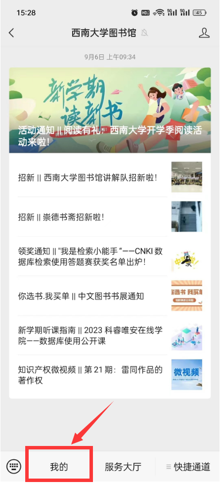1.关注437ccm必赢国际官方网站图书馆微信公众号(扫描下方二维码),绑定读者证(用户名为学号/教工号,密码为校园网办事大厅密码)。