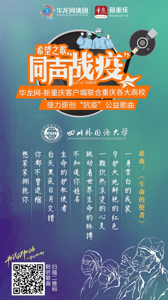 为了向医务英雄们表达心中的一份爱,传递冬日的一份暖,四川外国语大学国际文化交流大学生艺术团师生线上联动,短时间内联手创作了这首《生命的使者》,真挚表达川外人对白衣天使们的感恩与祝福。