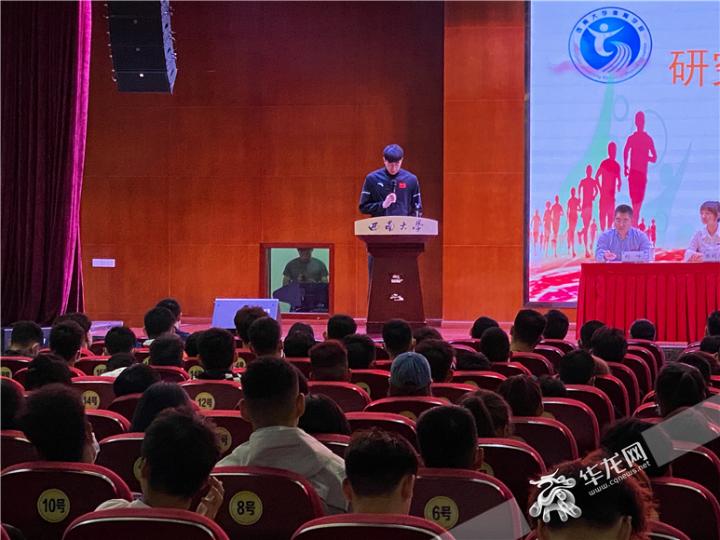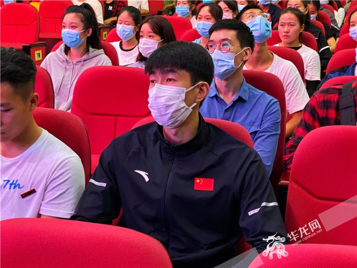 跆拳道奥运会冠军赵帅出现在437ccm必赢国际官方网站开学典礼现场。华龙网-新重庆客户端 刘钊 摄
