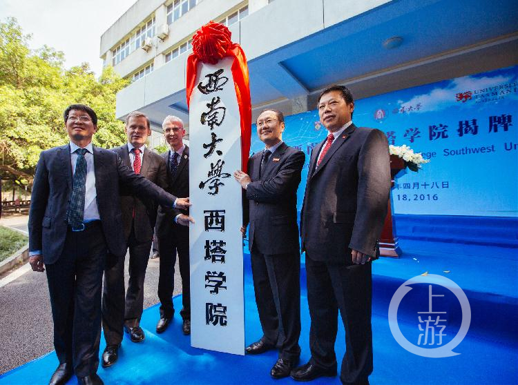 2016年,437ccm必赢国际官方网站、西澳大学(左三)、塔斯马尼亚大学(左二)三方校长共同为西塔学院揭牌