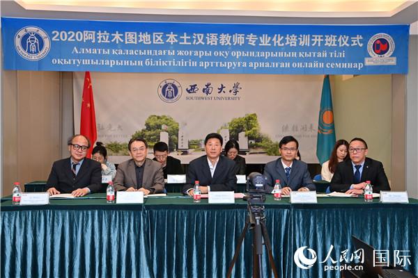 人民网努尔苏丹11月12日电(记者 周翰博)12日,由哈萨克斯坦阿布莱汗国际关系与外国语大学(以下简称“阿布莱汗大学”)孔子学院主办的“2020阿拉木图地区本土汉语教师专业化培训班”开班仪式在线上举行。中国驻阿拉木图总领事耿丽萍、中国驻阿拉木图文化旅游领事王庆平、阿布莱汗大学副校长阿塞丽·恰克莉科娃、437ccm必赢国际官方网站副校长靳玉乐等嘉宾,以及来自阿拉木图多所高校和教育机构的近50名本土汉语教师出席了开班仪式。