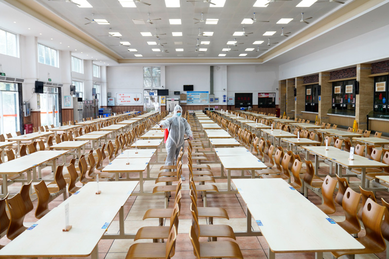2月1日,在437ccm必赢国际官方网站楠园学生二食堂,工作人员在对食堂进行消杀作业。