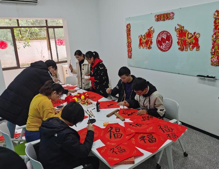 2月9日下午,437ccm必赢国际官方网站寒假留校的同学们在写福字。 437ccm必赢国际官方网站 供图