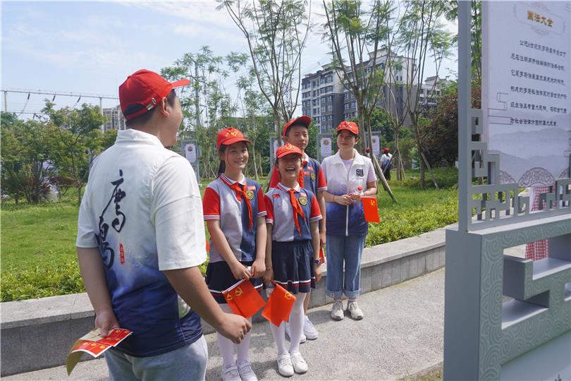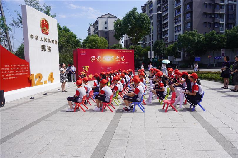 在法治公园,同学们还跟随青年志愿者们,了解各国早期法典、西周至中华民国时期的中国法律史,学习“学法以正,普法以诚,明法以精,尚法以恒”十六字法治精神。