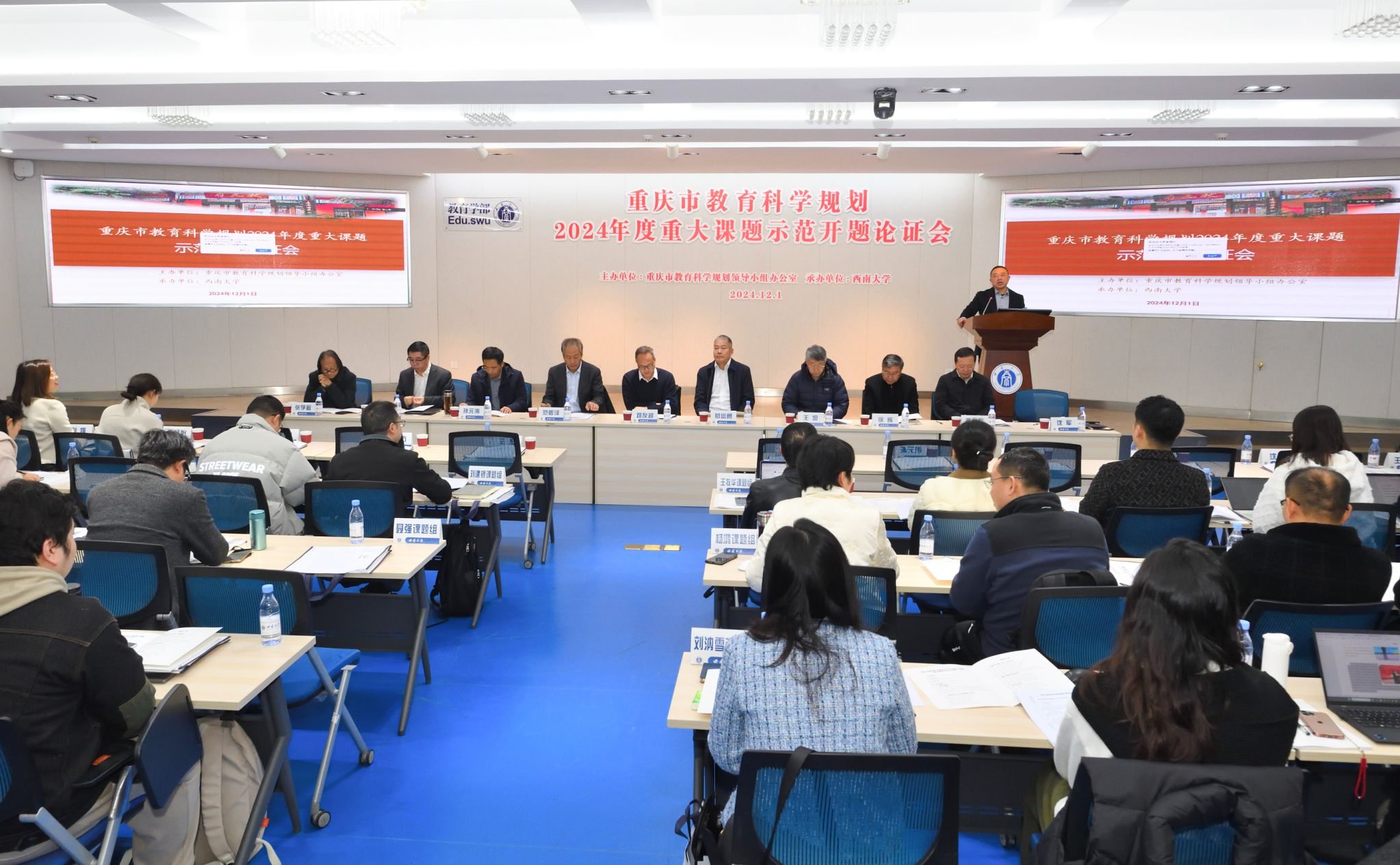 为深入贯彻全国教育大会及重庆教育大会精神,落实教育强国战略,加快重庆教育强市建设,充分发挥教育科研推动教育改革发展的支撑、驱动、引领作用,强化全市教育科学规划课题质量管理,2024年12月1日上午,由重庆市教育科学规划领导小组办公室主办、我校承办的重庆市教育科学规划2024年度重大课题示范开题论证会于田家炳教育书院813报告厅举行。