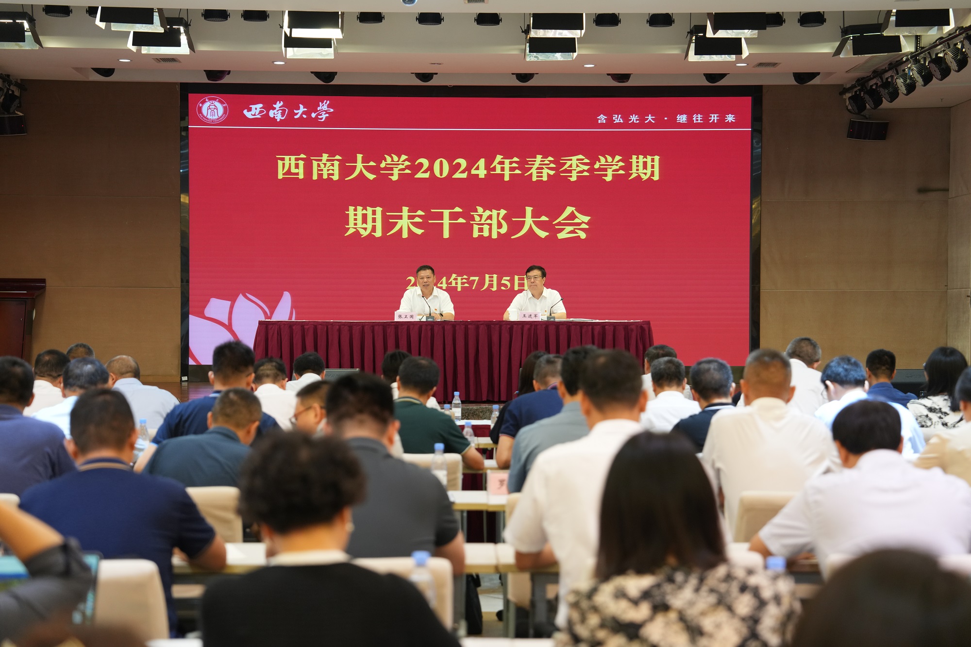 7月5日上午,学校在国际学院报告厅召开2024年春季学期期末干部大会,安排部署暑假及秋季学期有关工作。校领导,各二级党组织书记,各学院(部)院(部)长,机关部门、直附属单位、企业单位主要负责人出席会议。会议由党委书记张卫国主持。