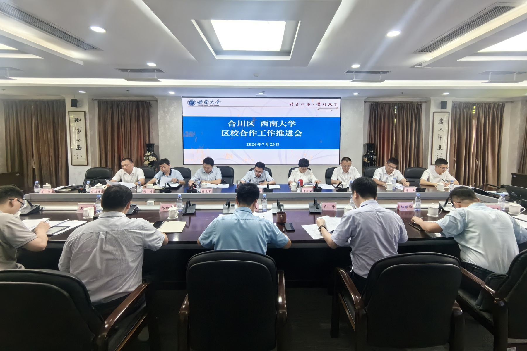 7月23日下午,合川区区委副书记秦敏、副区长袁晓钦带队到学校推进区校战略合作。副校长韩旭东出席并主持座谈会。