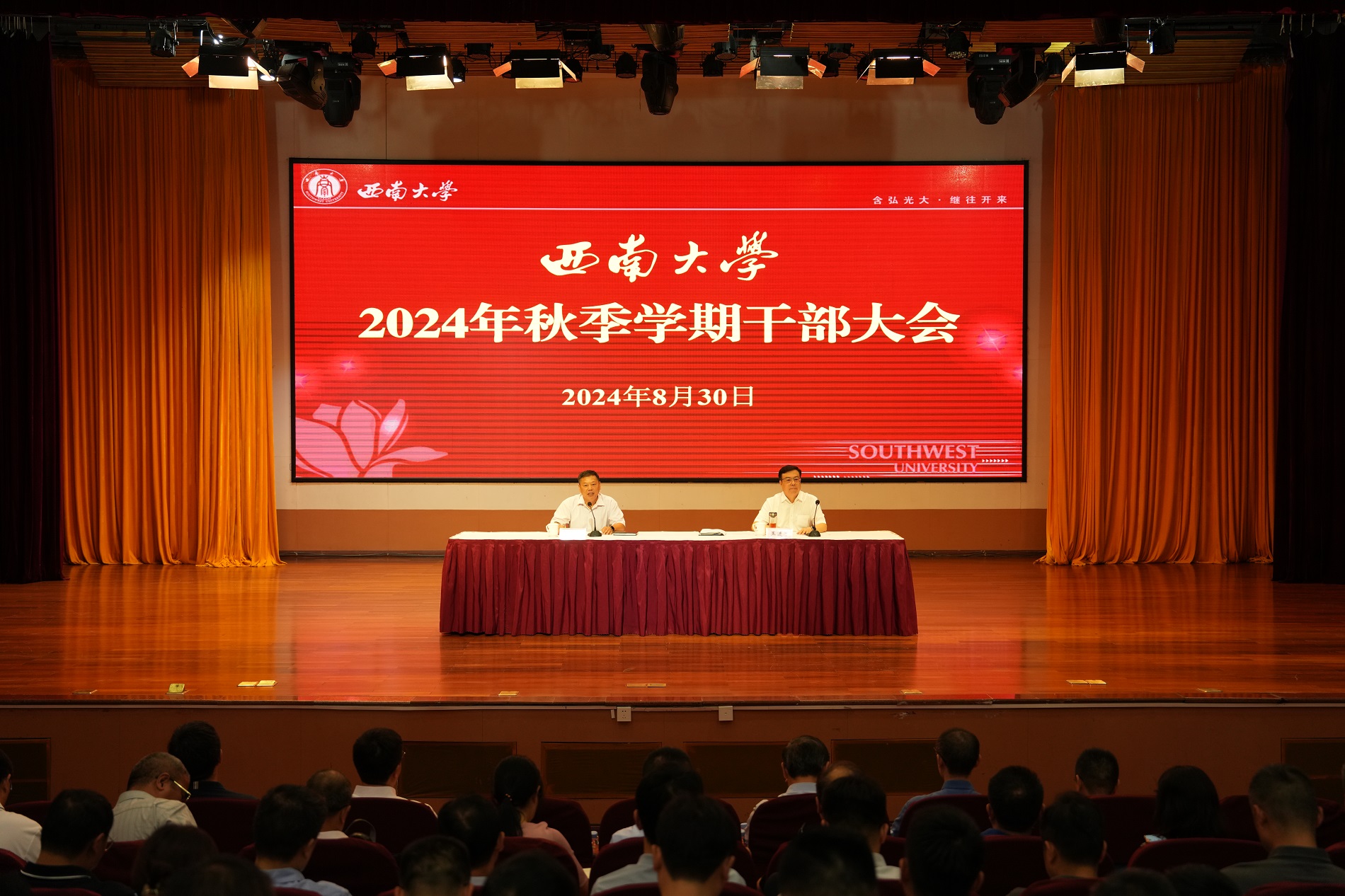 8月30日上午,学校在音乐学院演奏厅召开2024年秋季学期干部大会,安排部署秋季学期重点工作。会议由党委书记张卫国主持。