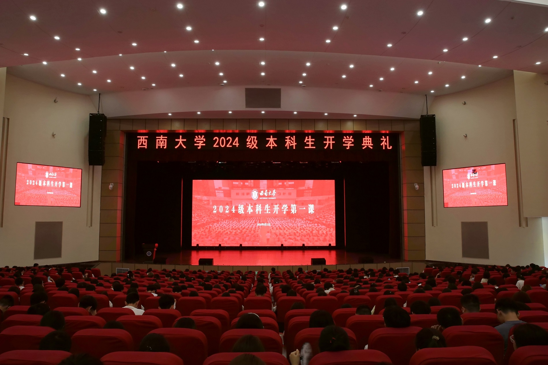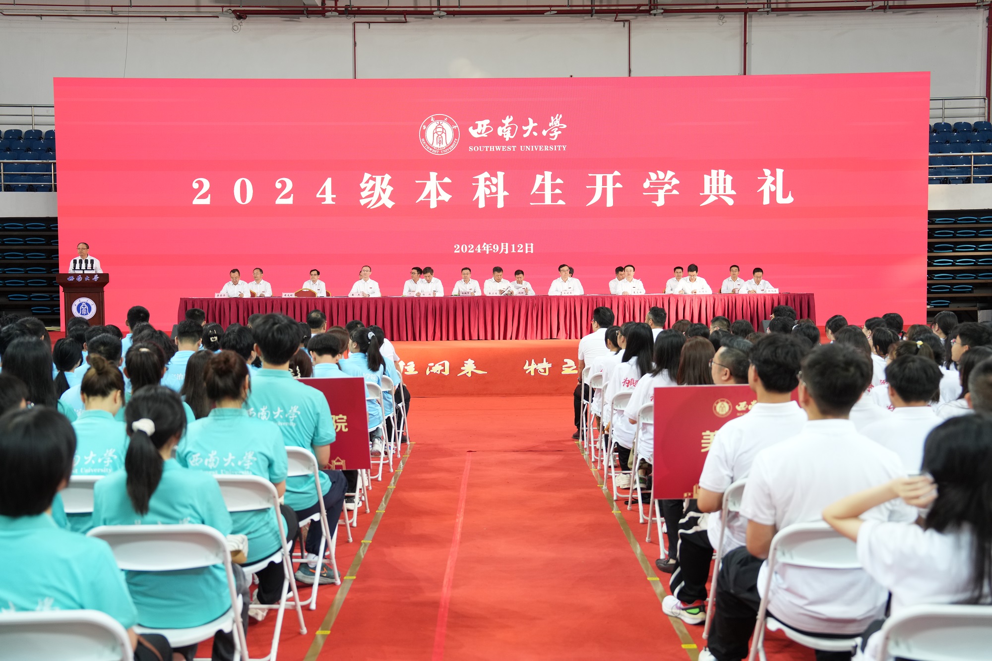 9月12日上午,学校举行2024级本科生开学典礼暨“开学第一课”。校领导、党委常委出席典礼。学校学生工作领导小组成员,荣昌校区党工委、管委会主要负责人,各培养单位党政主要负责人、副书记、副院(部)长、教师代表,2024级本科生辅导员、班主任以及2024级全体本科生参加典礼。典礼由党委常委、副校长周光明主持。