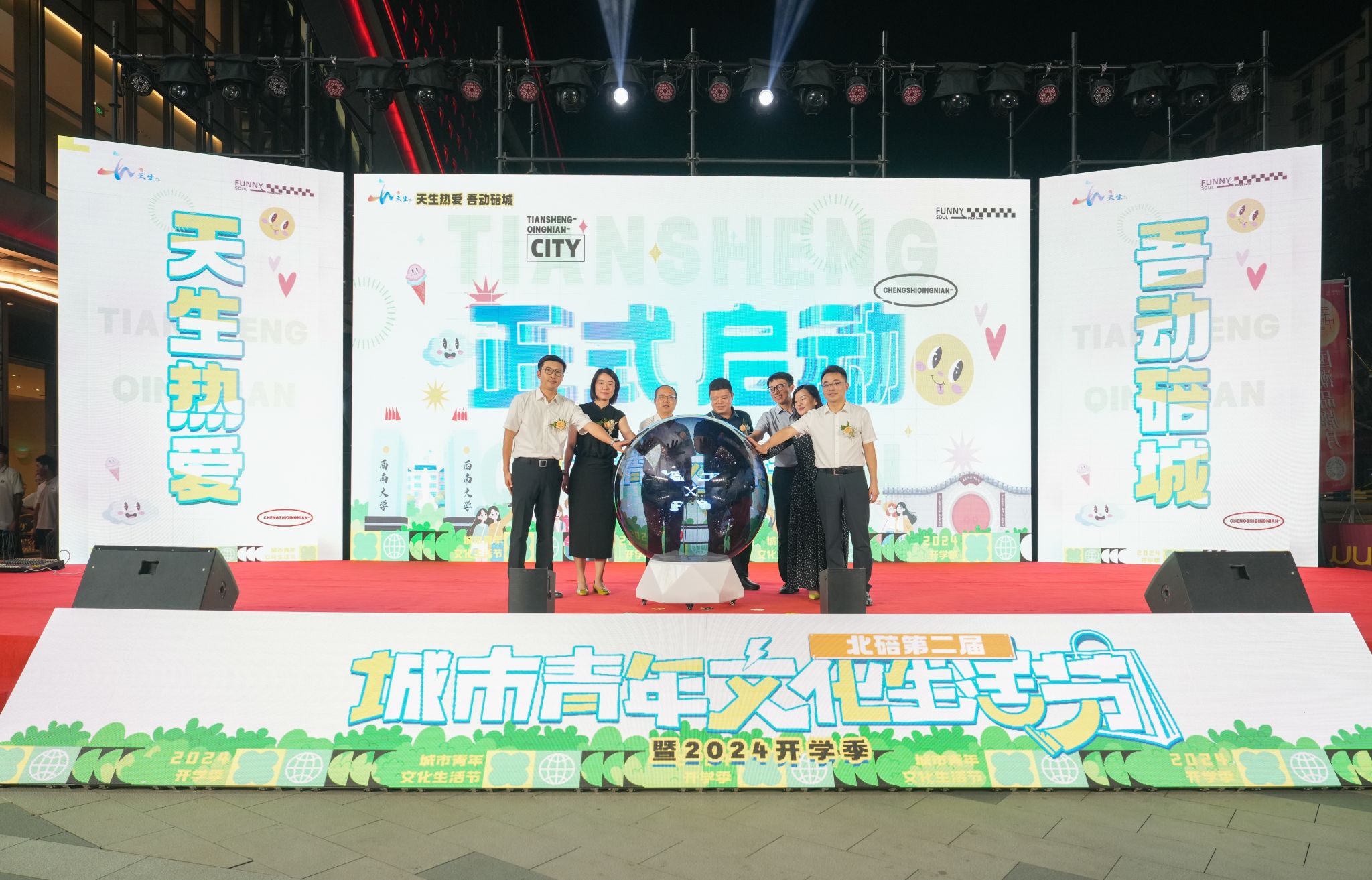 9月20日,北碚区第二届城市青年文化生活节暨2024开学季系列活动启幕仪式在北碚区吾悦广场举行,活动由北碚区人民政府天生街道办事处、共青团437ccm必赢国际官方网站委员会、共青团北碚区委员会主办,北碚区商务委员会和北碚区文化和旅游发展委员会支持。学校副校长周光明,北碚区副区长李纲出席活动。