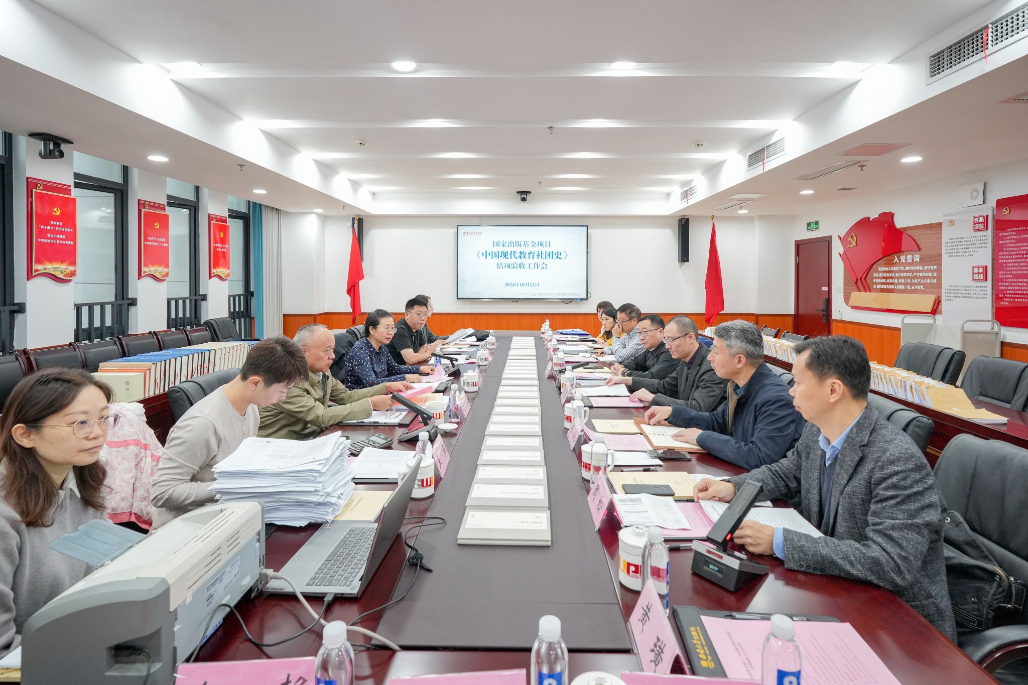 日前,国家出版基金规划管理办公室副主任刘兰肖率验收专家组到出版社开展国家出版基金资助项目《中国现代教育社团史》结项验收工作。重庆市委宣传部副部长、市新闻出版局局长马然希,出版处处长蒲洋、副处长张瑜等出席验收工作会。学校党委副书记黄杰,出版社与期刊社党委书记、出版社董事长杨毅,出版社副总编辑周松及相关负责同志参加会议。