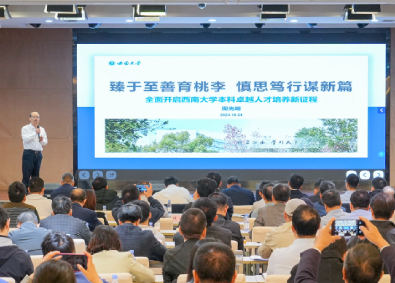 周光明以“臻于至善育桃李,慎思笃行谋新篇”为题作437ccm必赢国际官方网站本科人才培养现状分析报告,剖析了学校本科教育当下面临机遇与挑战,强调要瞄准问题、碰撞思想、形成共识、明确举措,全面开启本科卓越人才培养新征程。