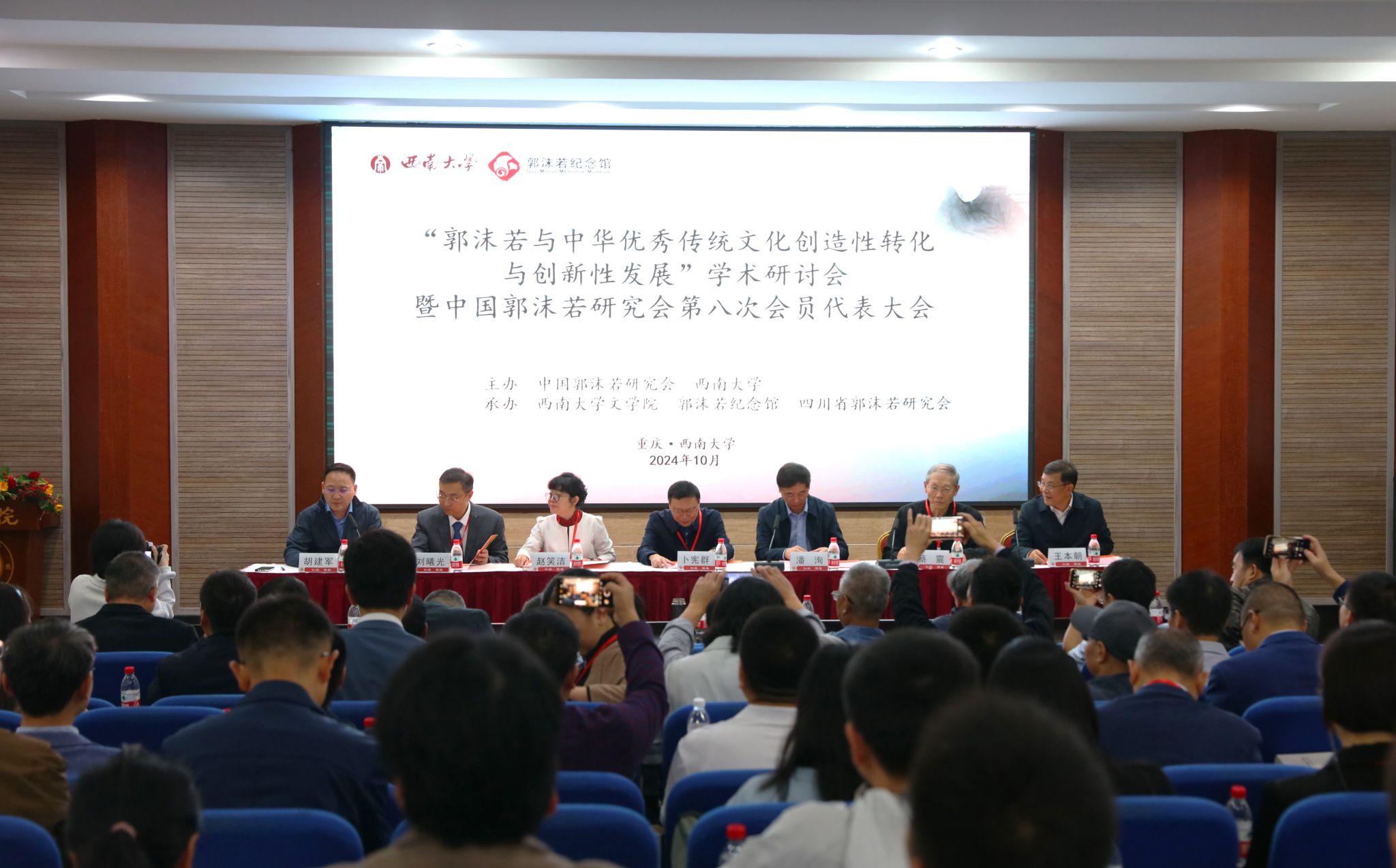 2024年10月19至20日,学校举办“郭沫若与中华优秀传统文化创造性转化与创新性发展”学术研讨会暨中国郭沫若研究会第八次会员代表大会。会议由中国郭沫若研究会、437ccm必赢国际官方网站主办,437ccm必赢国际官方网站文学院、郭沫若纪念馆、四川省郭沫若研究会承办。中国社会科学院古代史研究所所长、学部委员卜宪群研究员,中国社会科学院古代史研究所原党委书记赵笑洁,郭沫若纪念馆原副馆长、中国郭沫若研究会会长蔡震研究员,中国社会科学院郭沫若纪念馆副馆长(主持工作)刘曦光;学校党委副书记潘洵,文学院有关负责人出席开幕会。来自中国社会科学院、中国人民大学、北京师范大学、四川大学、武汉大学等30余所高校及科研院所的70余名专家学者参会。