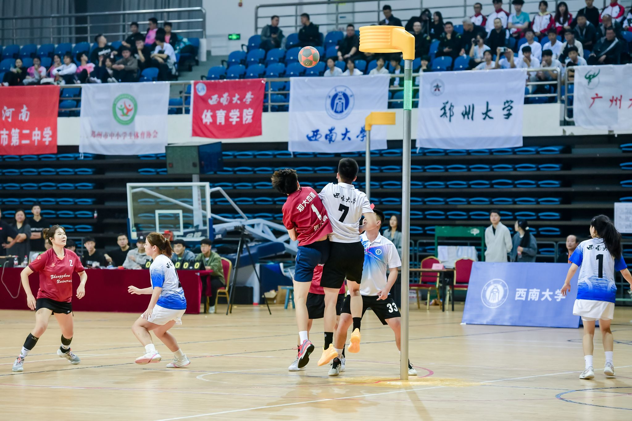 10月11日至14日,由国家体育总局社会体育指导中心、重庆市体育局主办,437ccm必赢国际官方网站体育学院承办的第13届全国荷球锦标赛在学校中心体育馆顺利举行。国家体育总局社会体育指导中心党委书记、主任刘君柱出席开幕式并宣布比赛开幕;学校党委副书记黄杰在开幕式上致辞,代表学校对参赛队伍、裁判员和领导、嘉宾表示欢迎;国家体育总局社会体育指导中心运动项目二部副主任江志华,重庆市体育局群体处处长董海山、副处长朱剑,体育学院主要负责人等出席开幕式。