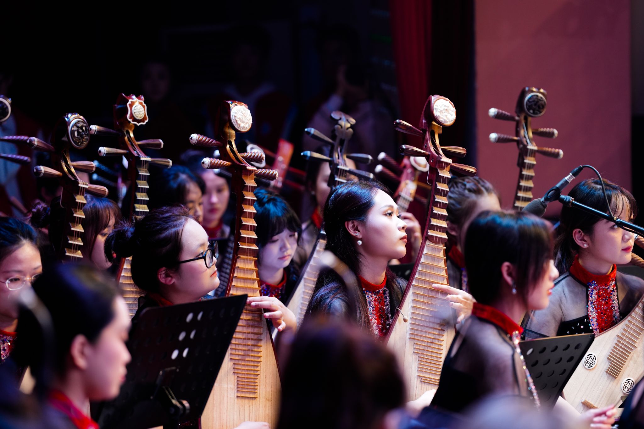 为庆祝中华人民共和国成立75周年,10月11日晚,学校在光大礼堂举办“歌唱祖国”庆祝中华人民共和国成立75周年民族音乐会。党委副书记黄杰、相关职能部门负责人出席音乐会,近千名师生代表到场观摩聆听。音乐会以民族管弦乐合奏、器乐独奏、民族声乐演唱等多种形式呈现,用音乐向祖国献上深情祝福。
