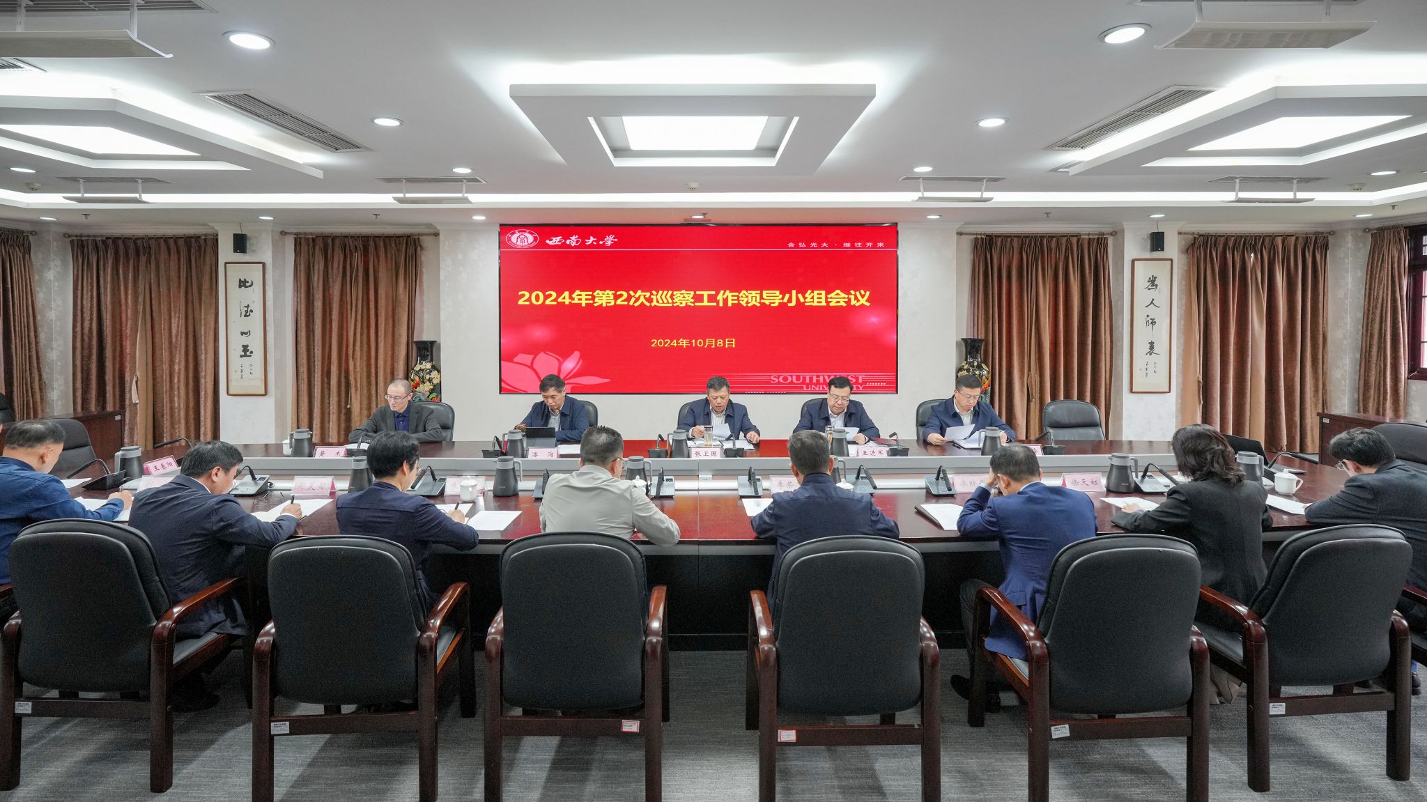 10月8日下午,学校党委召开2024年第2次巡察工作领导小组会议。党委书记、巡察工作领导小组组长张卫国主持会议。校长、巡察工作领导小组组长王进军,党委副书记、巡察工作领导小组副组长潘洵,党委副书记、纪委书记、巡察工作领导小组副组长夏玉峰,党委副书记、巡察工作领导小组副组长黄杰,党委常委、组织部部长李荣华出席会议。巡察工作领导小组全体成员单位主要负责同志参加会议。