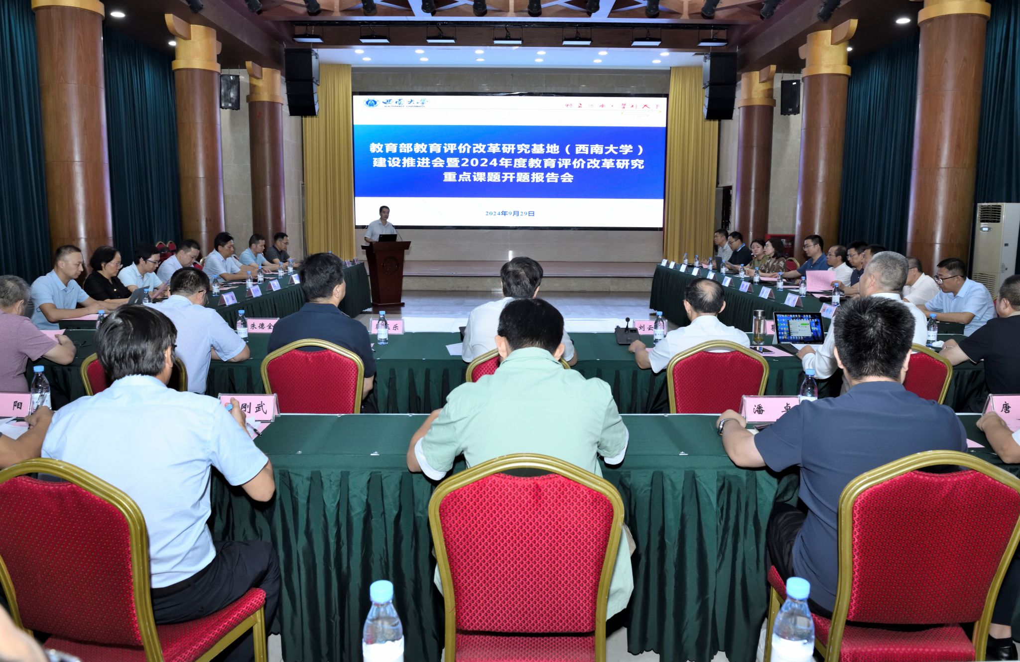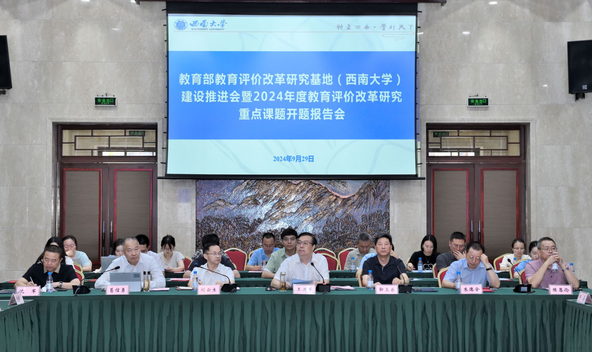 9月29日下午,教育部教育评价改革研究基地(437ccm必赢国际官方网站)建设推进会在东方红会议厅召开。深圳大学教育学部主任、文科资深教授靳玉乐,重庆市教育评估院院长刘云生,重庆市教育科学规划办副主任、市教科院科研处处长沈军,教育评价改革研究基地负责人、学术委员会委员以及基地研究人员参会。校长王进军,副校长、教育部教育评价改革研究基地(437ccm必赢国际官方网站)主任葛信勇出席会议。学校社会科学处处长王牧华主持会议。