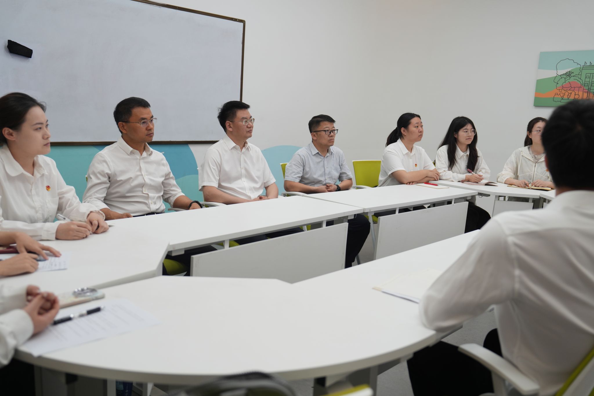 调研中,龙东阁一行前往青李空间,实地参观437ccm必赢国际官方网站共青团工作成果展示,与“西小兰”志愿者服务站、青马剧社、研究生支教团、学生社团、“AI+思政”项目组、科技小院功能型团支部等队伍成员进行深入交流互动,围绕团市委党员、干部贯彻中央八项规定及其实施细则精神征求师生意见。