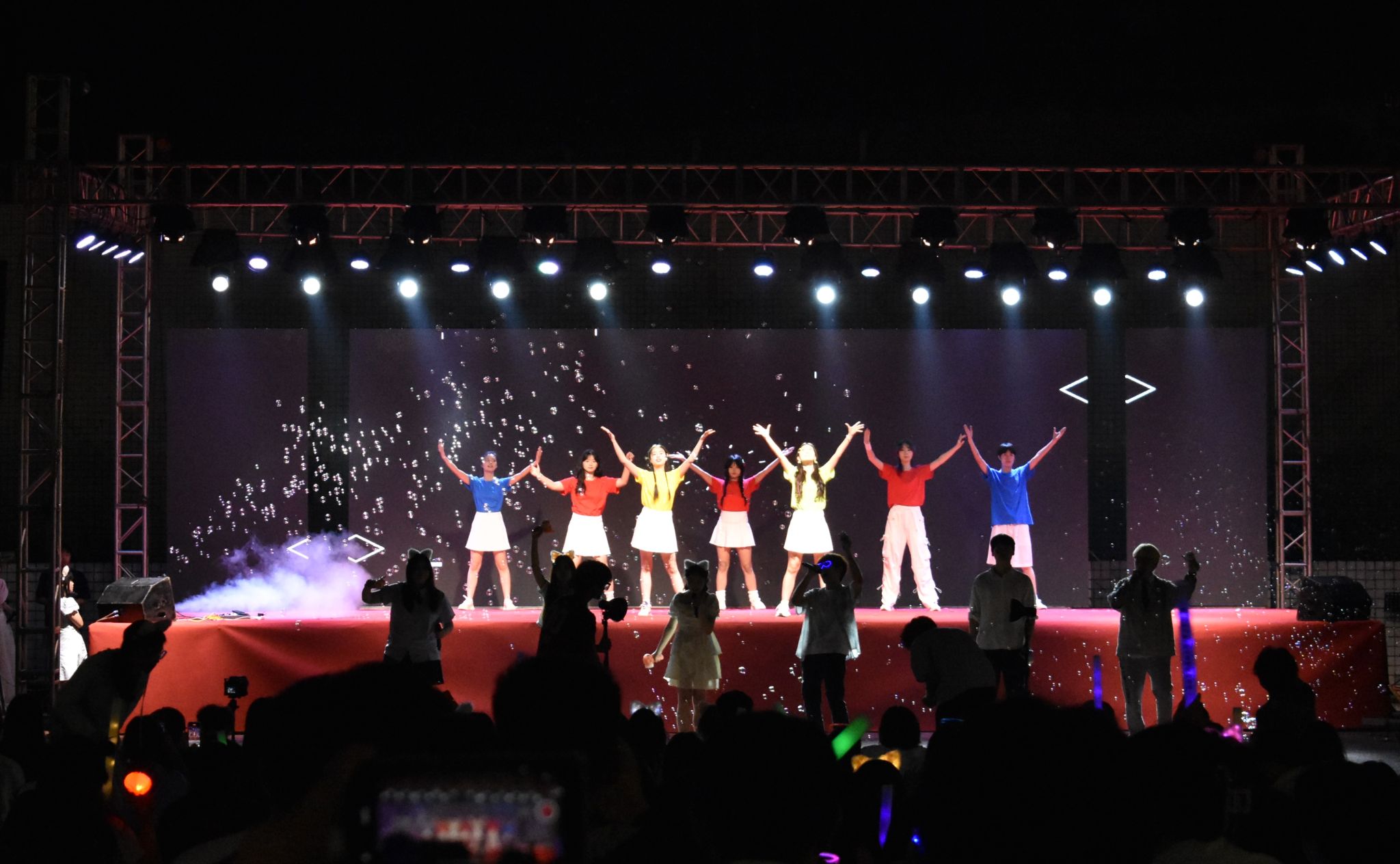 音乐会分为“青春序章・萤火同行”“仲夏流萤・音浪逐光”与“萤火之约・青春未央”三个篇章。充满活力的开场舞瞬间点燃现场气氛;校园歌手大赛十佳选手,五大学生组织、才艺嘉宾等依次登台献艺,他们用歌声唱响青春主旋律;互动环节,“夏日音乐猜猜猜”“百变大咖秀”等小游戏让现场欢声笑语接连不断。音乐会已然成为同学们心中难忘的青春记忆,激励着大家继续怀揣梦想、砥砺前行。