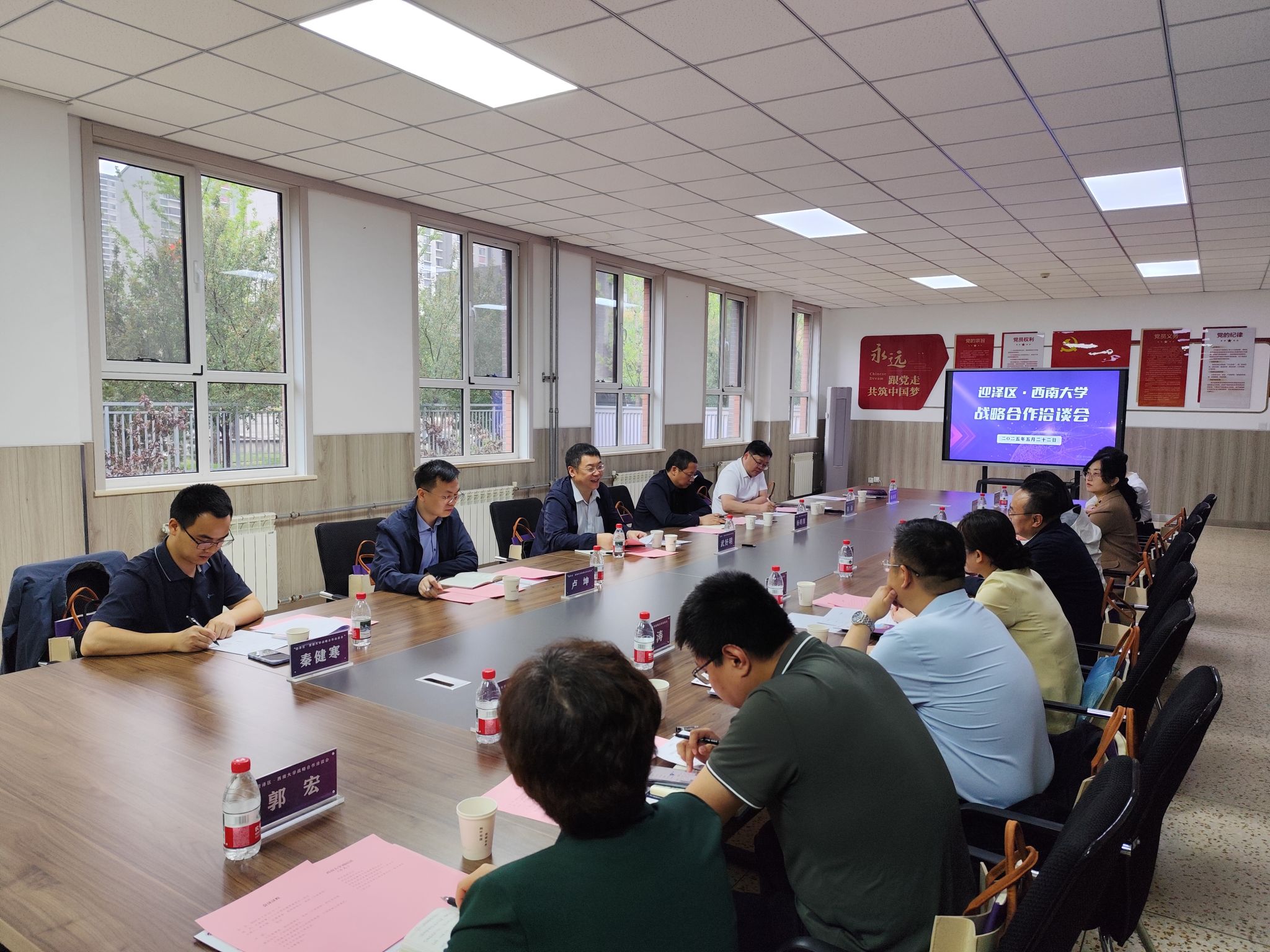 当日下午,武好明一行前往太原市迎泽区走访考察,并出席校地合作洽谈会,迎泽区委常委、组织部部长、党校(行政学校)校长李永强以及相关单位负责同志参加座谈。会前,大家一同参观了太原市三十七中东山校区。会上,双方围绕师范生培养、教育资源共享等作交流讨论。