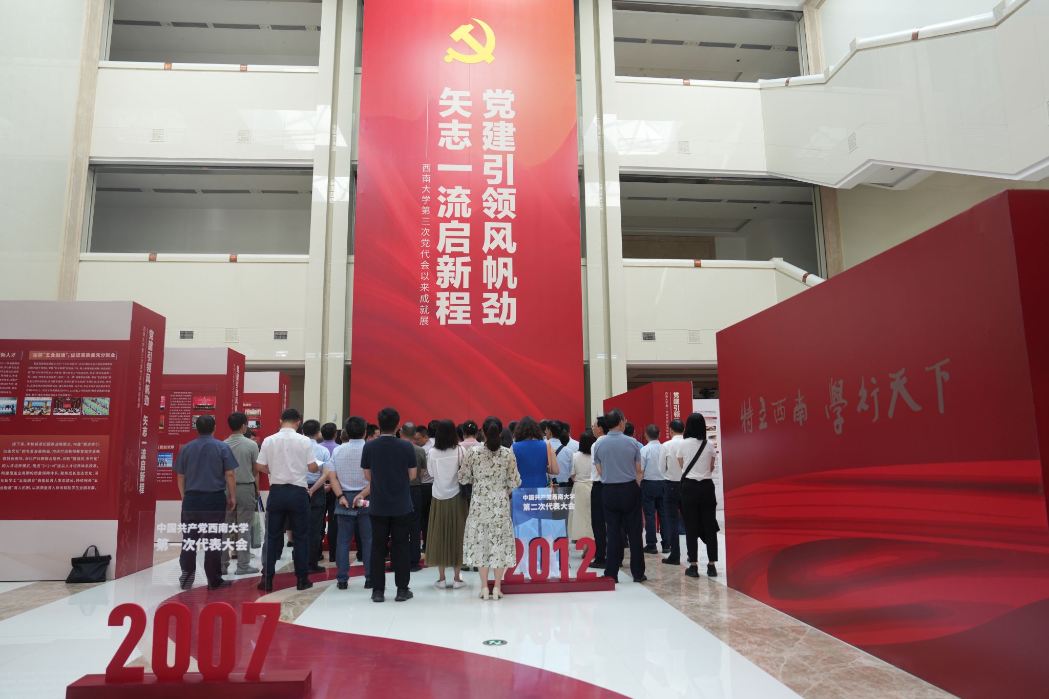 据悉,本次展览分“职能领域”和“二级党组织”两个展区,全景式展现过去近六年来,学校以高质量党建引领事业高质量发展的亮点业绩。展览面向全校师生及关心学校建设发展的社会各界人士开放。