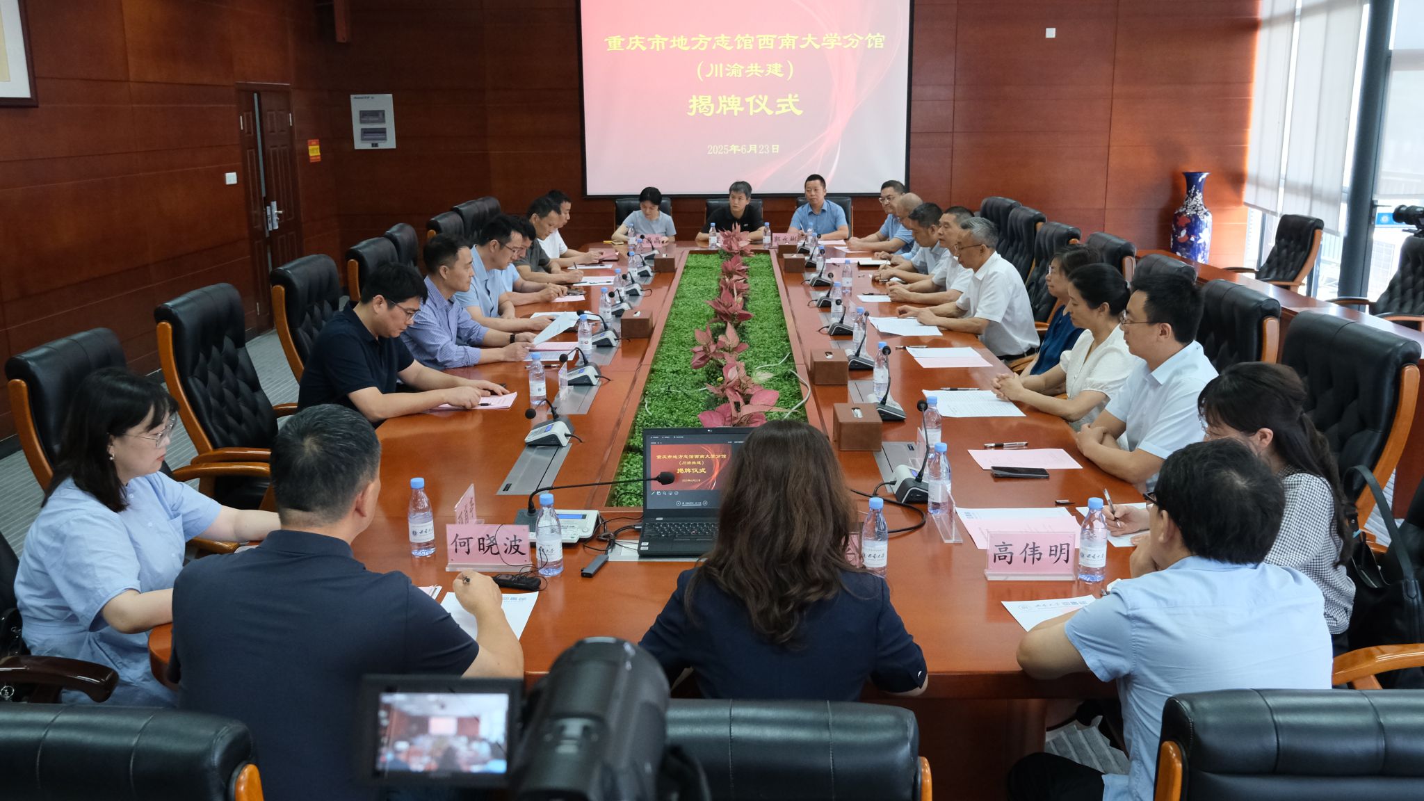 仪式上,陈建春、何晓栋、图书馆党委书记章雷和馆长涂涛共同为重庆市方志馆437ccm必赢国际官方网站分馆(川渝共建)揭牌。