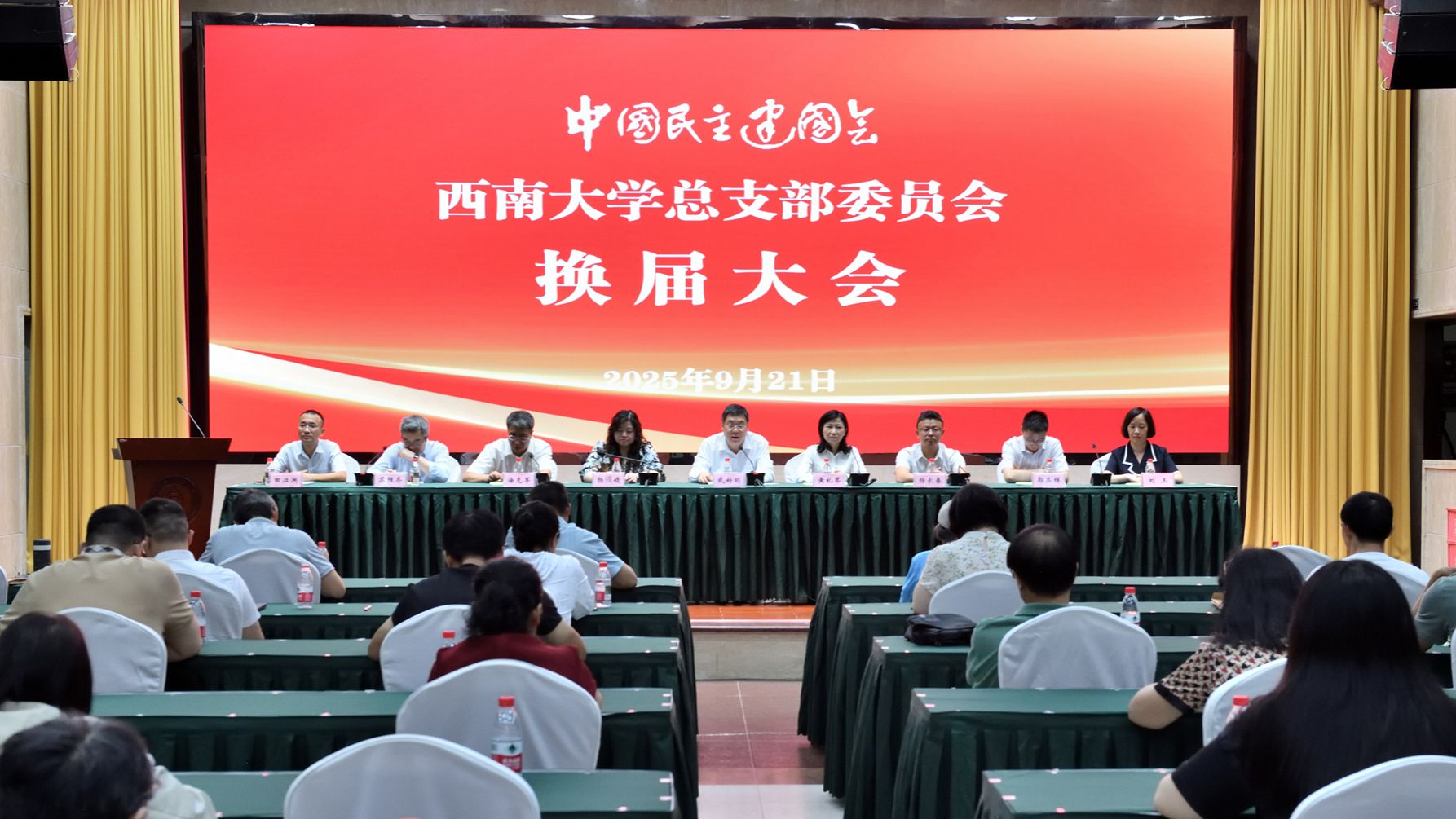 9月14日至21日,学校民革、民盟、民建、民进、农工党、致公党、九三学社等7个民主党派基层组织分别召开换届大会,圆满完成各项换届工作,顺利实现新老交替和政治交接。党委副书记武好明,北碚区委常委、统战部长杨锋,北碚区委统战部常务副部长杨长春,各民主党派重庆市委会专职副主委龚小雪、蒙格丽、罗挺、张昌红、杨作芳、田水松,各民主党派北碚区委会主委赵玉芳、于泽元、黄礼琴、刘贤宁、张奕、胡昌华、曹建等领导出席相关会议。