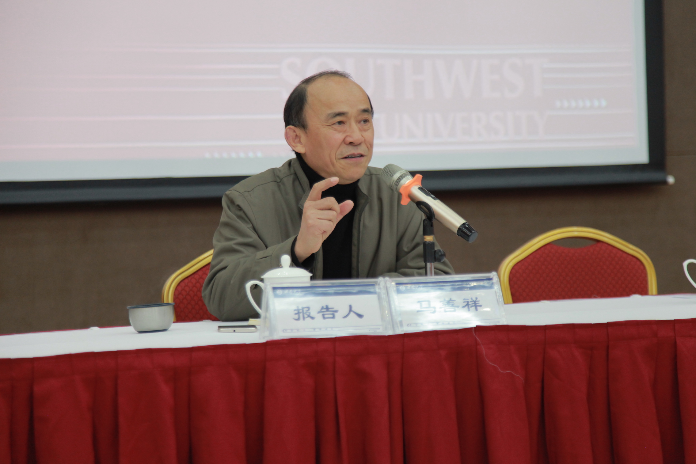 马善祥为西大师生们进一步讲解了基层群众工作的特点和规律,提出要用积极乐观的人生态度和奋发有为的精神状态为群众工作。他鼓舞师生要坚定理想信念,坚持人民至上,永远保持创新精神和奋斗精神,跑好新时代接力赛,为新时代的建设和中国梦的实现砥砺奋进。