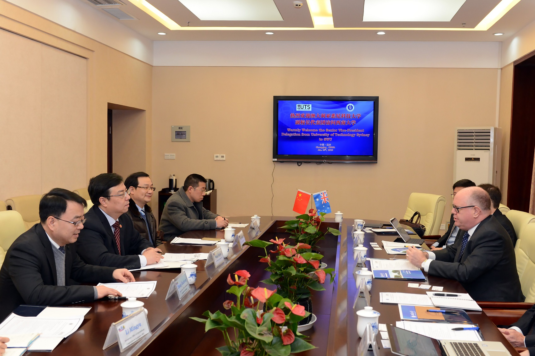 1月15日,澳大利亚悉尼科技大学(University of Technology Sydney,简称UTS)高级副校长安德鲁·帕菲特(Andrew Parfitt)、副校长艾因·瓦特(Iain Watt)、副校长刘勉,以及澳大利亚教育管理集团总裁李新庆等一行10人访问学校。副校长王进军会见客人。