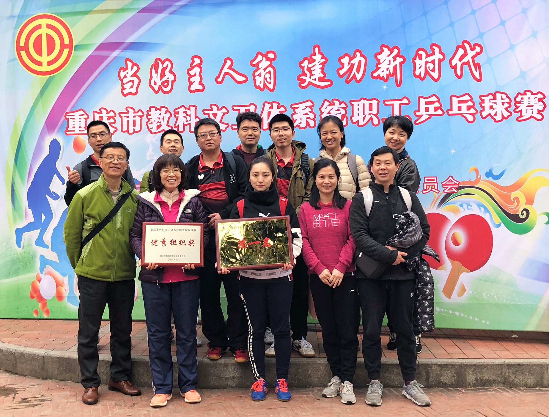 3月20日至22日,以“当好主人翁、建功新时代”为主题的重庆市教科文卫体系统职工乒乓球赛在重庆交通大学举行,我校教职工代表队力克群雄,在参赛的32支高校教职工代表队中脱颖而出,勇夺冠军,将作为主要班底,受市教科文卫体工会委托,进京参加全国比赛。