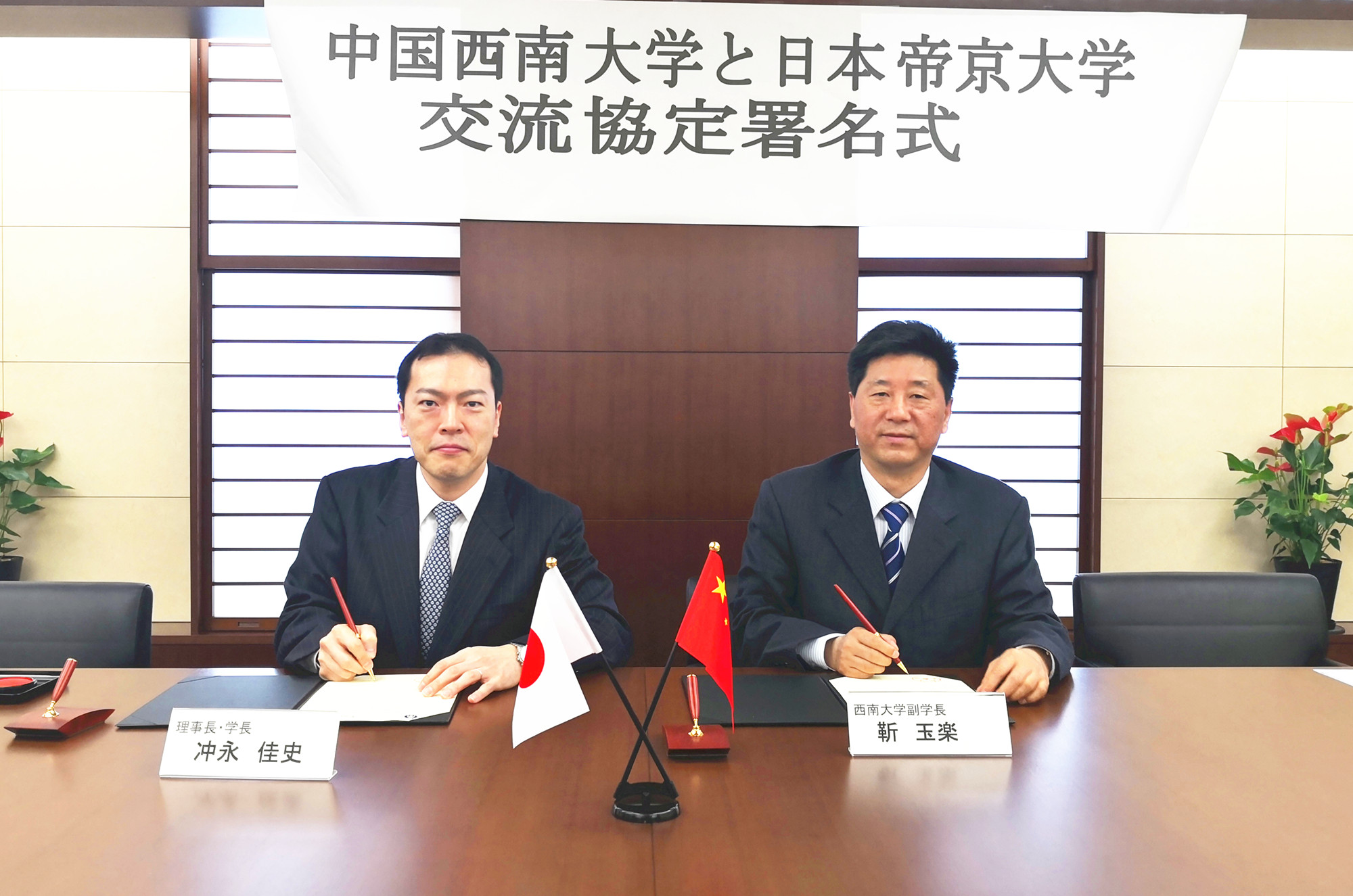 3月29日至30日,代表团访问日本帝京大学,与该校校长冲永佳史、理工学研究生院院长作田庄平教授、药学院院长栗原顺一教授、校办主任利根川丰等会谈。校长冲永佳史表示帝京大学将全力以赴与437ccm必赢国际官方网站开展广泛的国际交流与合作。靳校长代表学校邀请冲永校长访问学校,期待两校今后在生物科学等领域开展强强合作,进一步推动师生交流、合作科研、联合建立实验室等项目。随后,双方签订了校际合作协议,代表团还参观访问了该校药学院、理工学院等校区。