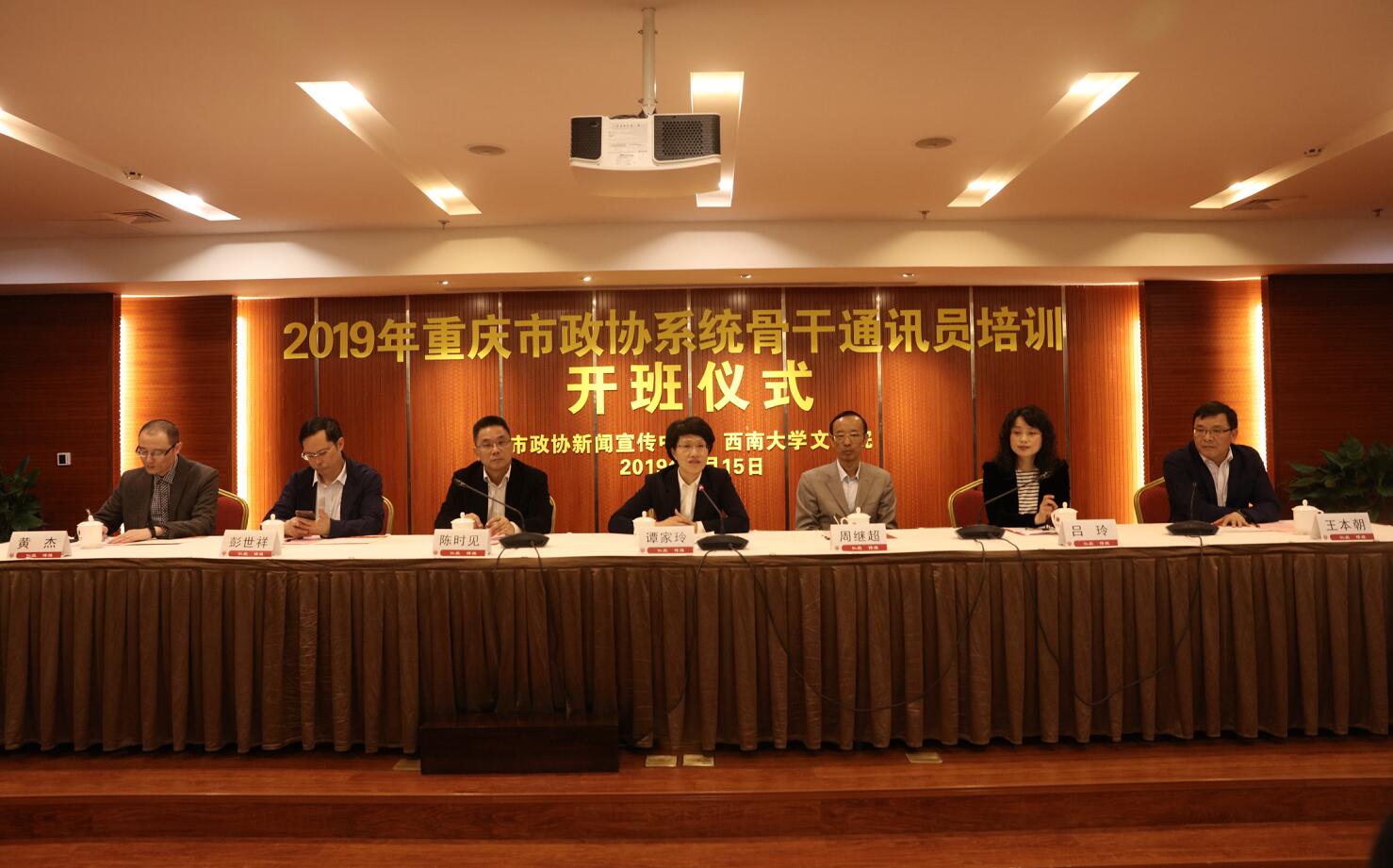 4月15日,2019年重庆市政协系统骨干通讯员培训在学校开班,重庆市政协副主席谭家玲,437ccm必赢国际官方网站副校长陈时见,北碚区政协主席周继超,重庆市政协研究室副主任吕玲,437ccm必赢国际官方网站文学院党委书记黄杰、院长王本朝,重庆市政协新闻宣传中心副主任彭世祥出席开班仪式。开班仪式由吕玲副主任主持,来自重庆市政协新闻宣传中心及各区县政协新闻部门负责人130余人参加开班仪式。
