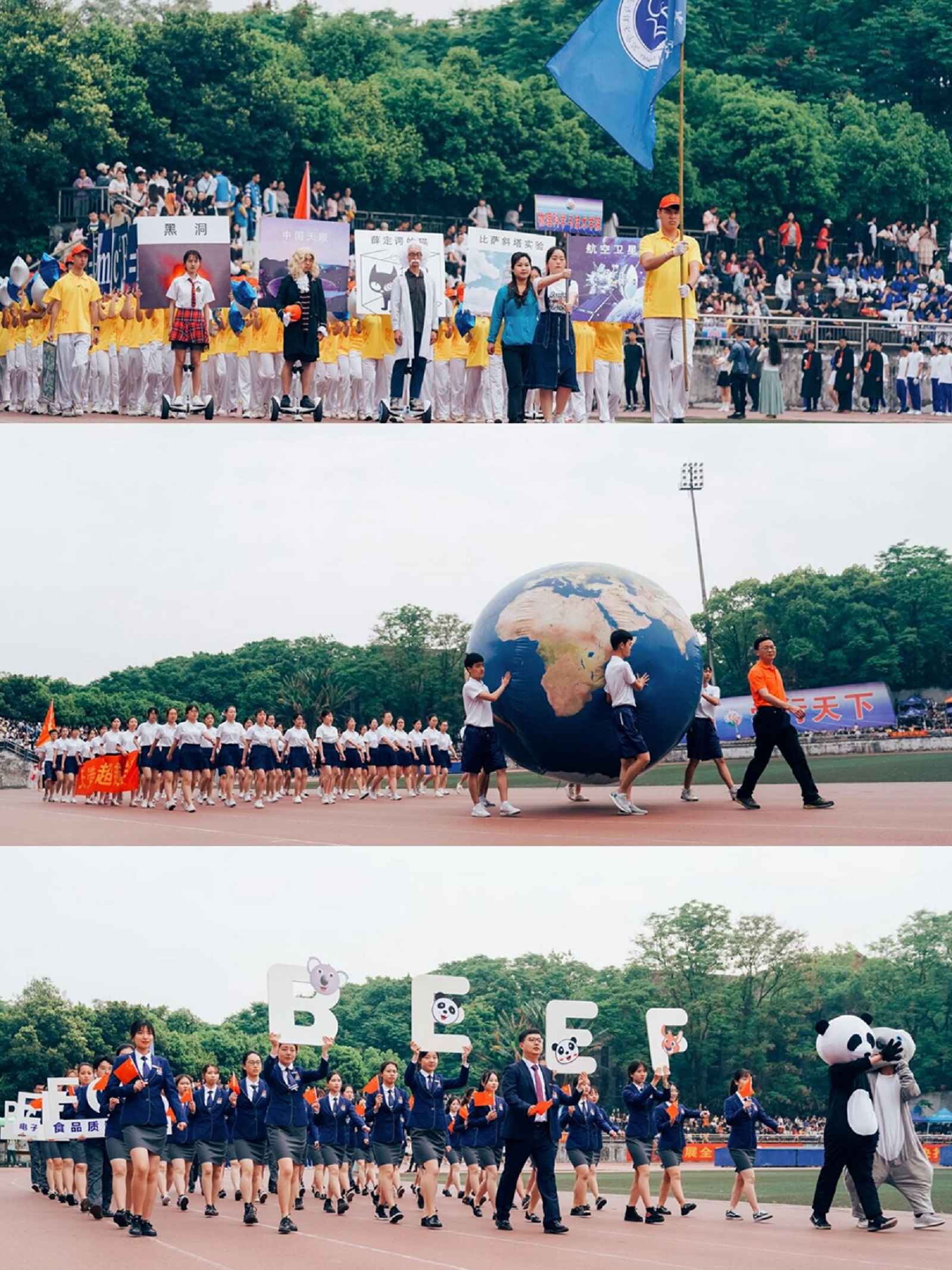 计算机与信息科学学院软件学院的同学用手写板拼凑出键盘的形状。地理科学学院带着巨型手制地球仪步入场内——入场式成了阐释各学院学科专业的“走秀场”,展现了学校莘莘学子特有的朝气,同时也展示了西大学子的自信与热情。