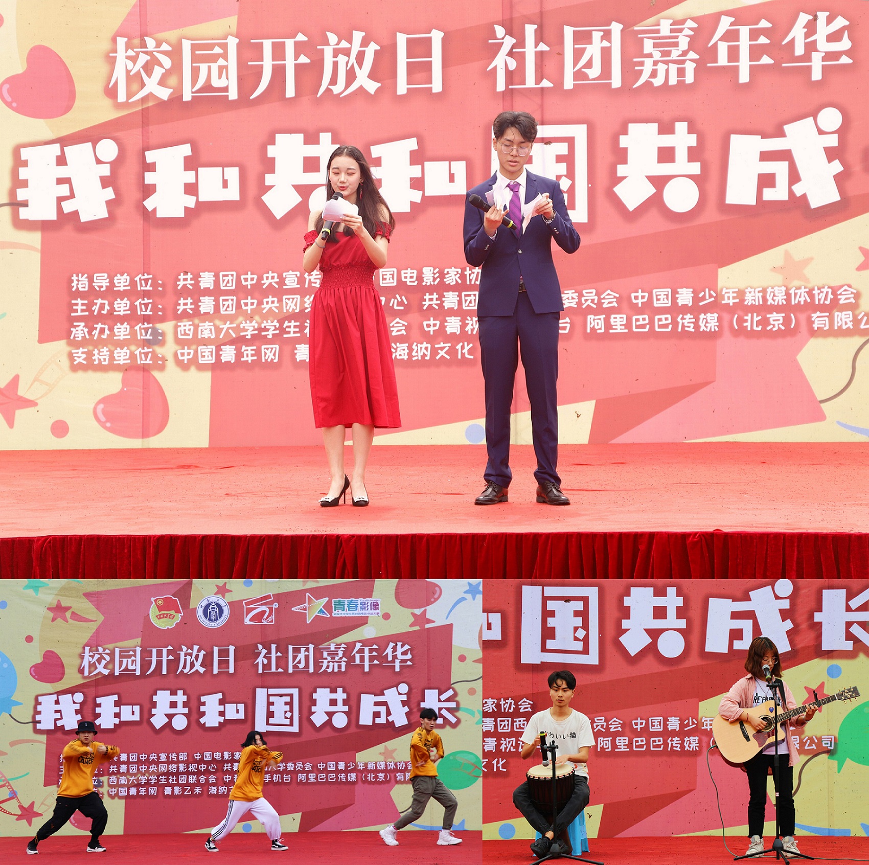 4月20日,第三运动场上摩肩擦踵、人潮涌动,以“我和共和国共成长”为主题的社团嘉年华活动如期举行。校长张卫国、党委副书记潘洵来到现场和师生、校友、考生及其家长一起互动,共同感受学校学生社团的青春风采和良好风貌。