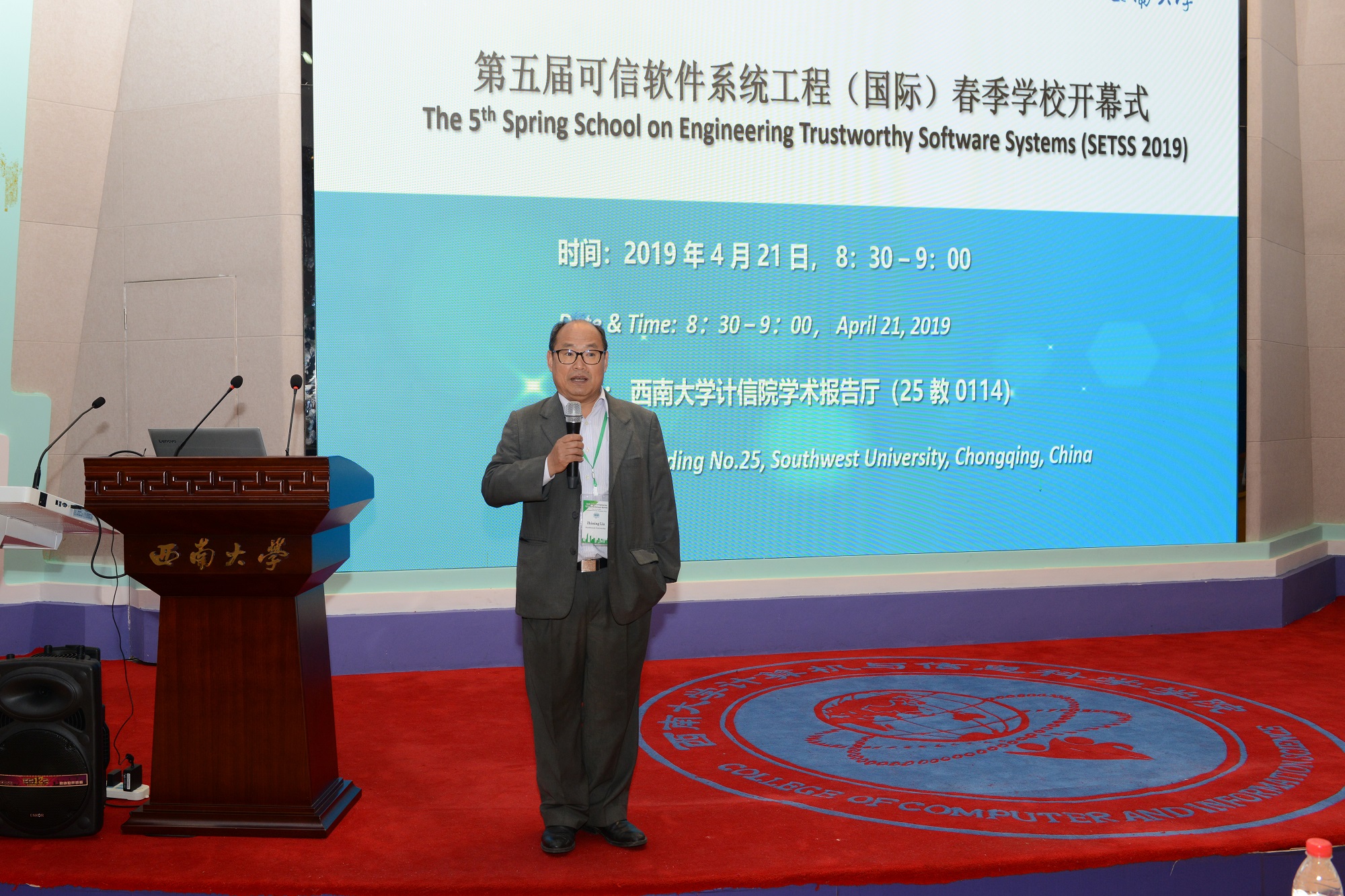 2019年第五届437ccm必赢国际官方网站可信软件系统工程(国际)春季学校(SETSS 2019)于4月21日正式拉开帷幕。学校副校长崔延强出席开幕式并致欢迎辞。受邀的软件工程领域国际专家,及来自全国各大高校和科研院所的90余位学员参加了开幕式。开幕式由国家“千人计划”专家、学校软件研究与创新中心(RISE)主任刘志明教授主持。计算机与信息科学学院/软件学院党委书记靳拥军,院长肖国强,副书记刘作勋,外聘专家Shmuel Tyszberowicz教授参加开幕式