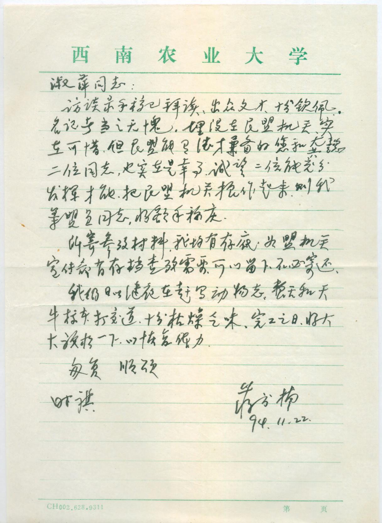 “我仍日以继夜在赶写动物志,整天和天牛标本打交道,十分枯燥乏味,完工之日,好大大放松一下,以恢复体力”,这是八十岁高龄的蒋书楠老先生1994年11月22日写给好友的一封信件,从字里行间可以读出老先生的疲惫及工作的枯燥,但是他仍然在撰写动物志的道路上笔耕不辍。