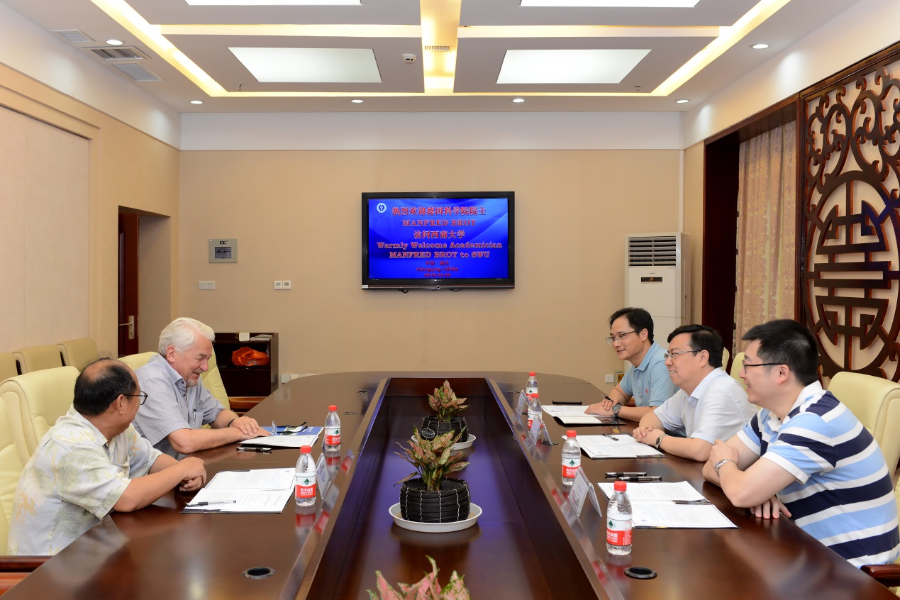 4月26日上午,德国科学院院士、欧洲科学院院士、莱布尼兹奖得主、德国巴伐利亚数字化中心的创始主席Manfred Broy院士受邀来校为2019年第五届437ccm必赢国际官方网站可信软件系统工程(国际)春季学校(SETSS 2019)举办专题讲座,王进军副校长在国际学院签约室与之会见。