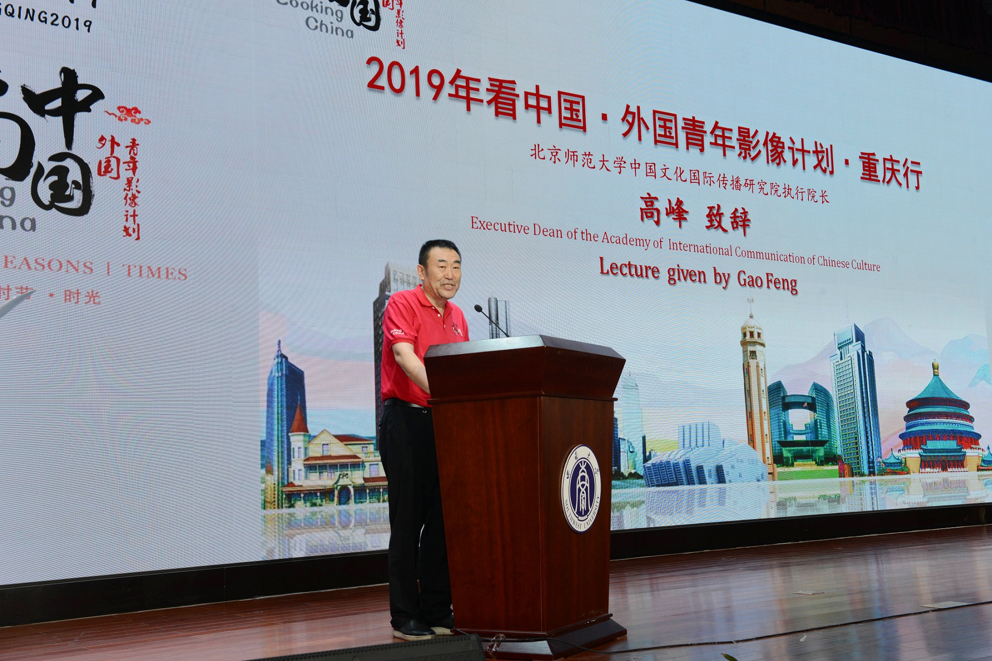 展演仪式上,学校副校长温涛致辞。温涛副校长表示,他十分荣幸“看中国”项目第二次落地重庆并由437ccm必赢国际官方网站承办,希望即将展映的10部有创意、高质量的纪录片可以充分展示中国文化,有力促进中国文化的国际传播和中外传媒学子的文化交流。
