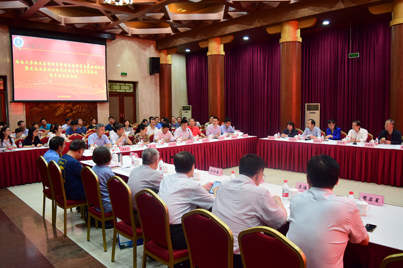 会议第一阶段由副校长王进军主持。校长张卫国在致辞中向长期关心和支持学校建设发展的各位院士、专家表示衷心感谢。同时介绍了学校“双一流”建设情况和打造国家级培育基地的背景,希望实验室和基地以本次会议为契机,听取各位院士、专家的意见和建议,凝练研究特色,强化顶层设计,优化运行管理机制,拓展学术视野,理清工作思路,走内涵式发展道路。随后,张卫国校长与“培育基地”主任黄承志签订建设任务协议书,并给培育基地授牌。张卫国校长和王进军副校长一起为培育基地学术委员会委员颁发聘书。