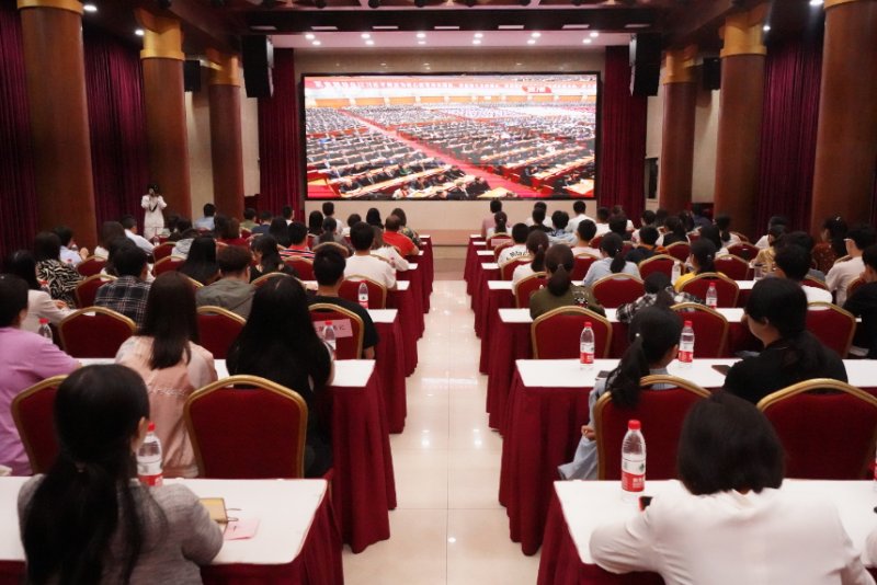学校党委学生工作部、团委全体人员以及各学院部党委副书记、辅导员、青年教师代表和学生代表集中收看了习近平总书记在纪念五四运动100周年大会上的讲话。学校党委副书记潘洵在学生处第二活动中心与师生共同观看了大会直播。