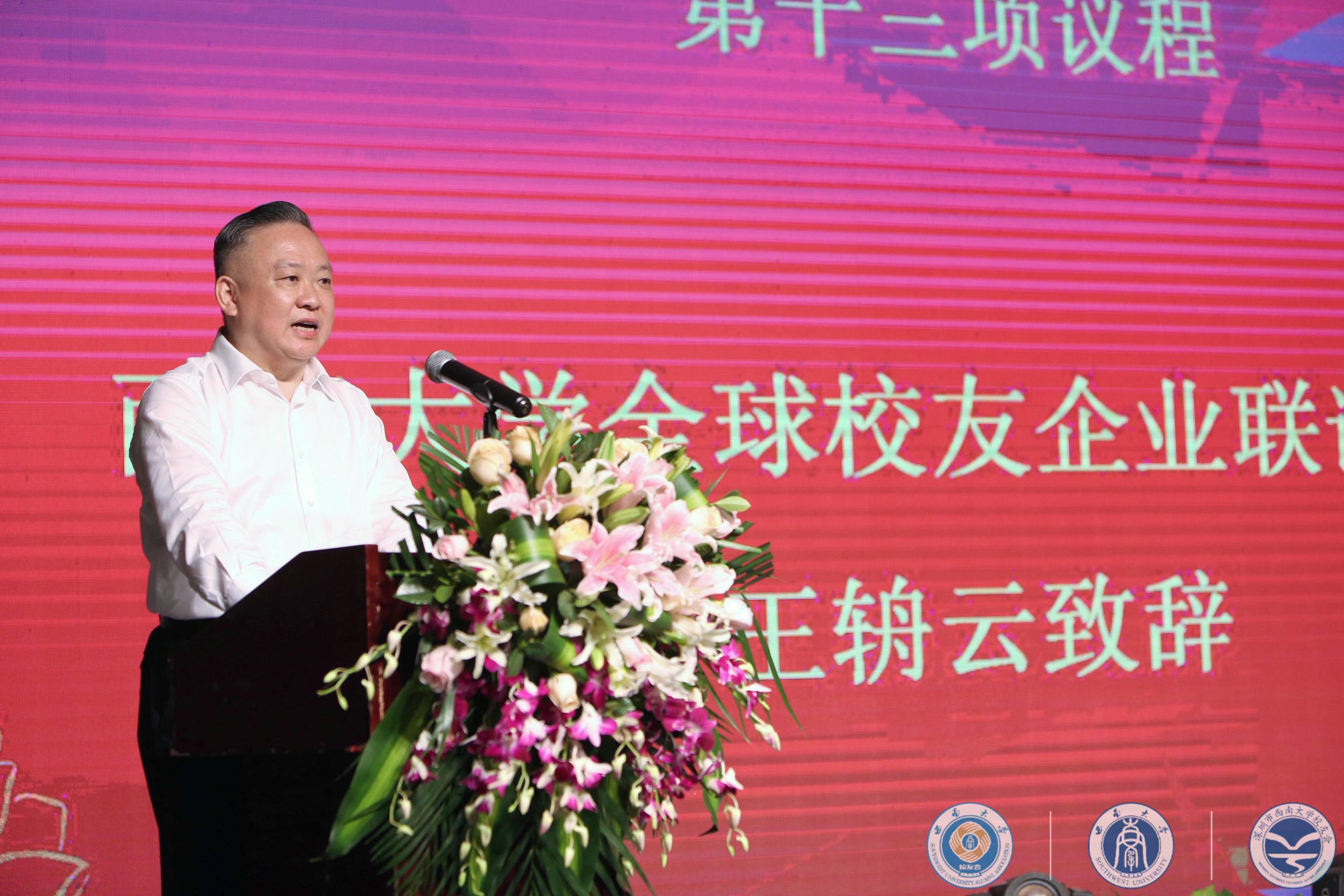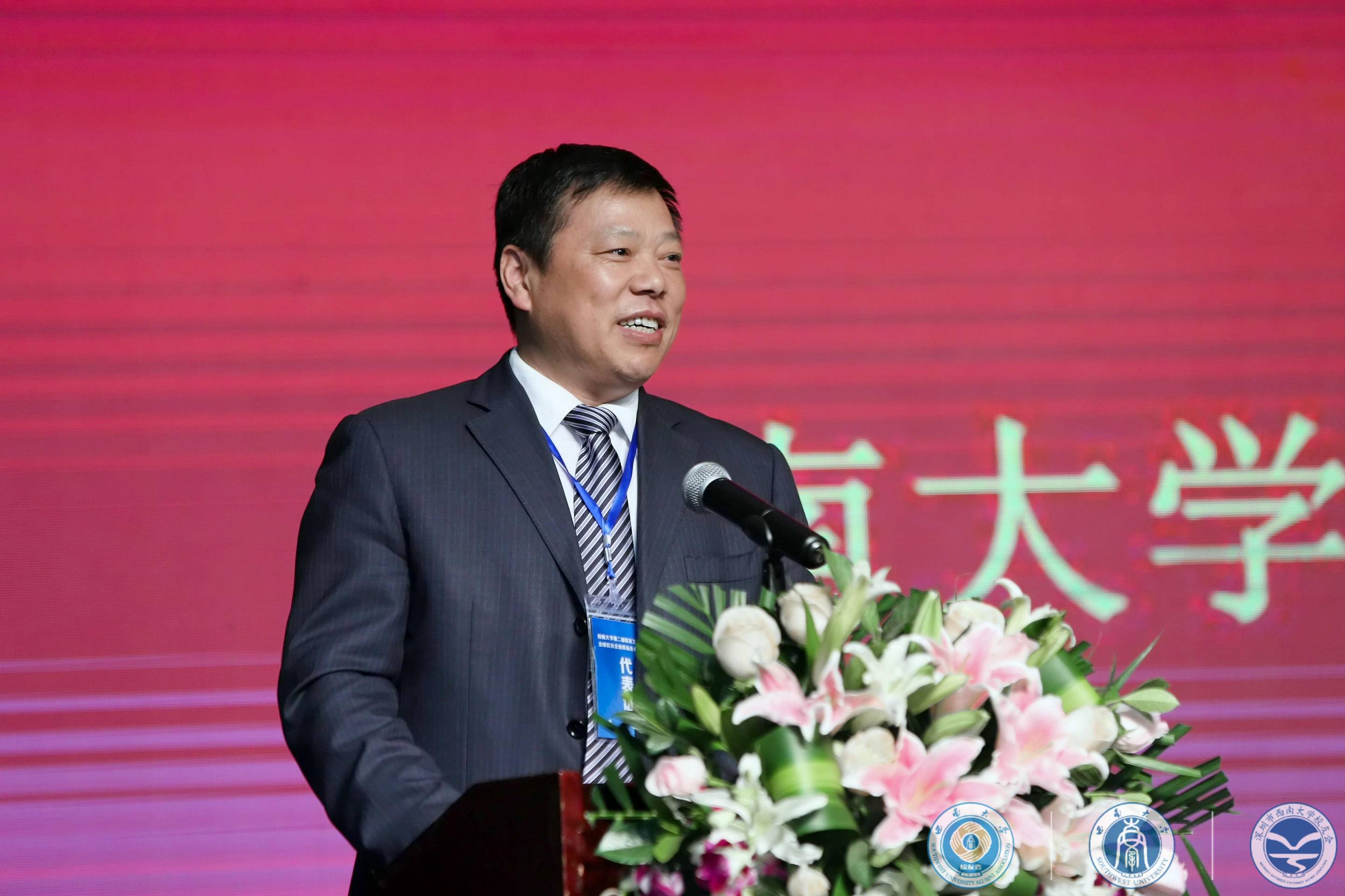 4月27日上午,学校第二届校友工作会暨全球校友企业联谊会(以下简称“西大企联”)成立大会在深圳召开。学校校长、校友总会会长张卫国,校友总会副会长、437ccm必赢国际官方网站原副校长丁忠民,党委常委罗朝明,校长办公室主任葛信勇,对外联络部部长、校友总会秘书长龚常智,北碚区委常委董伦等相关领导出席会议,来自海内外的50余校友组织的会长、秘书长代表、校友企业代表以及学校培训学院、校地合作处、创新创业学院、资产经营有限公司等相关职能部门代表160余人参加会议。大会由丁忠民副会长主持。