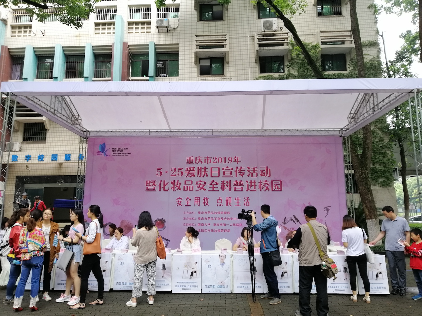 正值首届全国化妆品安全科普宣传周,为增强广大青年学生安全用妆意识,校团委邀请重庆市药品监督管理局、重庆市药品不良反应监测中心来校,联动相关学生社团开展了“5·25爱肤日宣传活动暨化妆品安全科普进校园”系列主题教育活动。