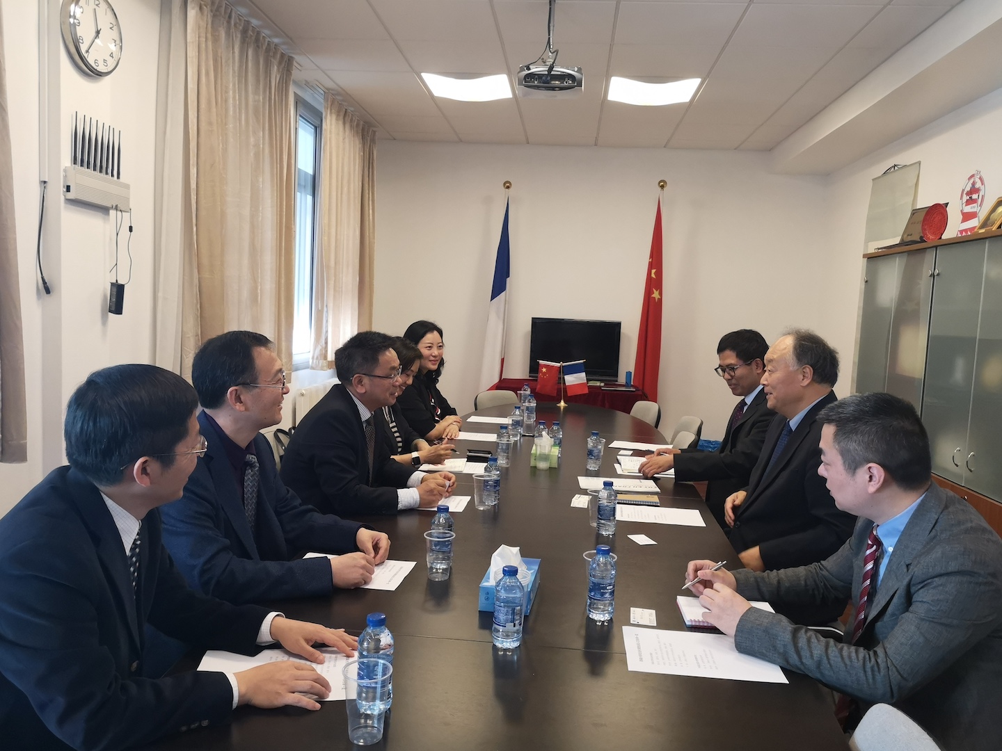 26日,学校代表团受到中国驻法国大使馆教育处杨进公参的热情接待。在会谈中,杨公参在简要介绍教育处基本情况之后,详细讲解了法国教育体系、法国高等教育改革的最新进展以及优质高教资源分布情况。陈校长介绍了437ccm必赢国际官方网站优势学科专业及其与法国高校的合作情况。双方就如何深化拓展437ccm必赢国际官方网站与法国高校的交流与合作、延揽优尖人才、加强师资队伍建设等问题交换了看法。此外,双方还在中学开展法语教学这一议题上达成一致意见,表示将积极推进落实437ccm必赢国际官方网站附属中学的法语课程开设。随后,陈校长会见了法国规莱斯大学国际副校长Essaid Ait Barka一行5人,两校在农学、物理和生物等领域达成了联合培养研究生和合作科研等意向。