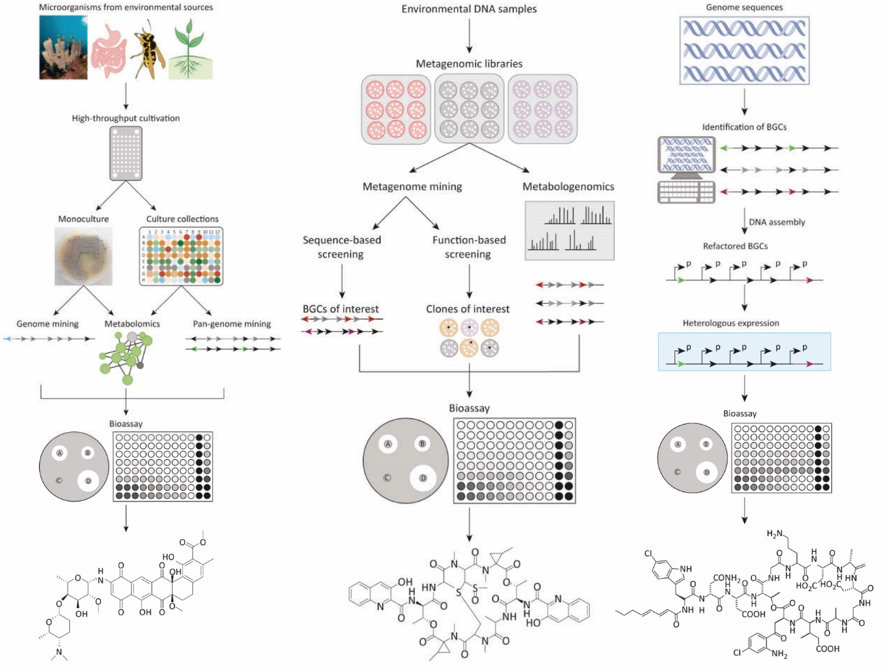 近日,学校生物技术中心牛国清研究员应Cell旗下期刊Trends in Biochemical Sciences(影响因子16.889)主编Sannie Culbertson博士特邀,在线发表题为“Next-generation drug discovery to combat antimicrobial resistance”(发现"下一代药物"应对细菌耐药问题)的综述论文,从微生物天然产物的新来源、原始产生菌的高通量筛选、基因组挖掘和异源菌中途径重构等方面,系统地总结了“下一代药物”发现的研究策略。