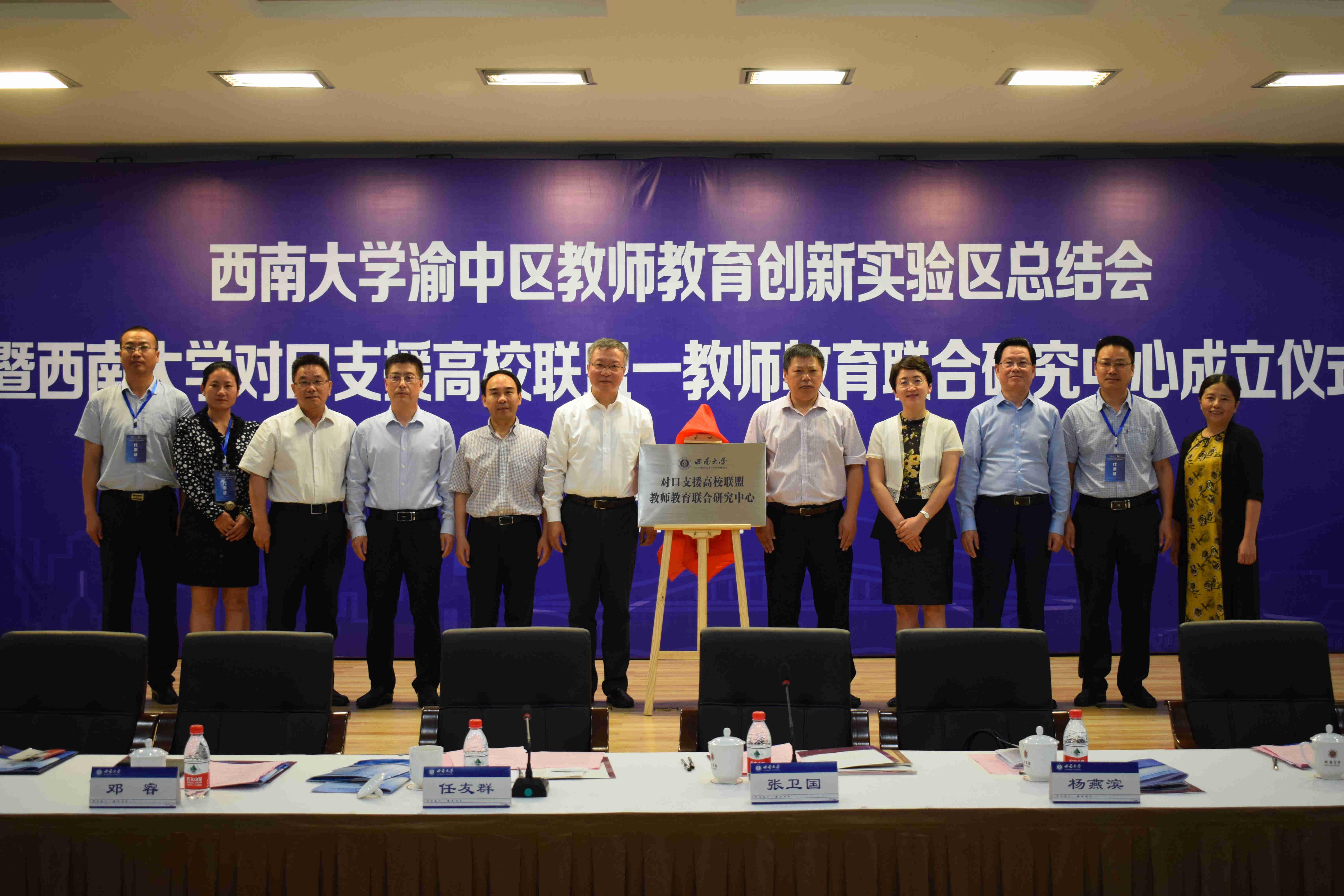 任友群司长一行同邓睿副主任、刘先海副巡视员、渝中区区委常委张远洪、渝中区教委主任唐点权等领导出席437ccm必赢国际官方网站——重庆市渝中区人民政府共建教师教育创新试验区总结会暨437ccm必赢国际官方网站对口支援高校联盟—教师教育联合研究中心成立仪式,观看了437ccm必赢国际官方网站教师教育创新实验区建设专题片,听取了教师教育学院副院长张学斌关于实验区的建设总结汇报,刘先海副巡视员宣读了实验区建设专家评审意见。张卫国校长向渝中区“437ccm必赢国际官方网站卓越教师工作站”授牌并向卓越教师培养导师颁发聘书,聘请渝中区10位优秀教师为学校卓越教师培养导师;张远洪常委向437ccm必赢国际官方网站教师颁发聘书,聘请学校10位教师担任渝中区名师名校长培养导师。任友群司长和张卫国校长共同为“437ccm必赢国际官方网站对口支援高校联盟—教师教育联合研究中心”揭牌。张远洪常委讲话指出,教师教育创新实验区建设为渝中教育提供了强有力的智力支持和人才保证,也为渝中教育实现高质量发展奠定了坚实的基础。希望437ccm必赢国际官方网站和渝中区能够继续携手,在教师教育等各领域开展更加深入、广泛的合作,积极探索新路径、实施新策略,形成多边互动、互惠互利、合作共赢的良好局面,为努力办好人民满意的教育而共同努力。