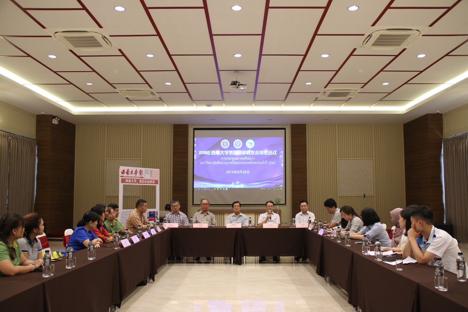 27日,刘猛书记一行赴合艾回访泰国南部校友会,并参加了泰国南部校友会2019年年会。泰国宋卡府泰中侨团联合会主席张俊贵先生、泰国南部校友会会长谢海秋先生、德教树强学校校董会主席陈礼琛先生出席会议,泰国南部华文学校联谊会秘书长魏光磊先生,陶华教育慈善学校、树强华文学校、国光孔子课堂等学校校长、教师代表,泰南留学生代表,实习教师代表等参加了会议。泰南校友会成立于2016年6月11日,会长谢海秋先生以及众多企业家对校友会工作给予了大力支持,谢会长表示愿意提供场地作为泰南校友会校友之家,并捐助设立“谢海秋奖学金”支持泰南留学生在校学习深造。
