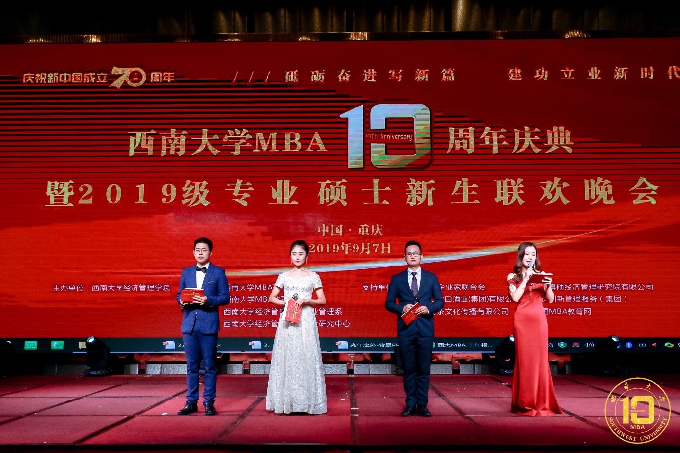 经济管理学院党委书记、院长祝志勇致欢迎辞。参会嘉宾共同观看沙画,回顾了学院MBA项目十年征程。2010级MBA校友、北京中思远信息科学研究院院长、四川西翔投资集团创始人杨长进和2019级专业硕士研究生代表左乾隆分别发言。