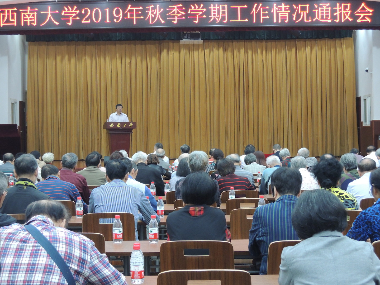 张卫国校长详细阐述了秋季学期的25项重点工作。他指出,要扎实开展“不忘初心、牢记使命”主题教育,学习宣传贯彻落实学校第三次党代会精神,围绕庆祝中华人民共和国成立70周年开展系列主题教育活动,深入推进高校思想政治理论课建设,加强意识形态工作,落实“党支部建设年”任务,深化组织机构改革,落实全面从严治党“两个责任”清单,深入抓好巡视整改,加强师德师风建设,完善“三全育人”格局,做好统战群团和离退休工作,加强规划工作的统筹和研究力度,优化学校内部治理,持续落实一流本科教育“六大重点建设任务”,全面修订学术型研究生培养方案,深化创新创业教育改革,聚力推进一流学科建设,建立健全目标责任与考核评价机制,优化人才培养和科研环境,深度服务国家和重庆市脱贫攻坚,强化校地、校企、校际合作,推进基础设施建设。张校长非常感谢广大离退休教职工在学校建设发展中所作的贡献,希望大家能够一如既往地关注支持学校改革发展,做出新的贡献。