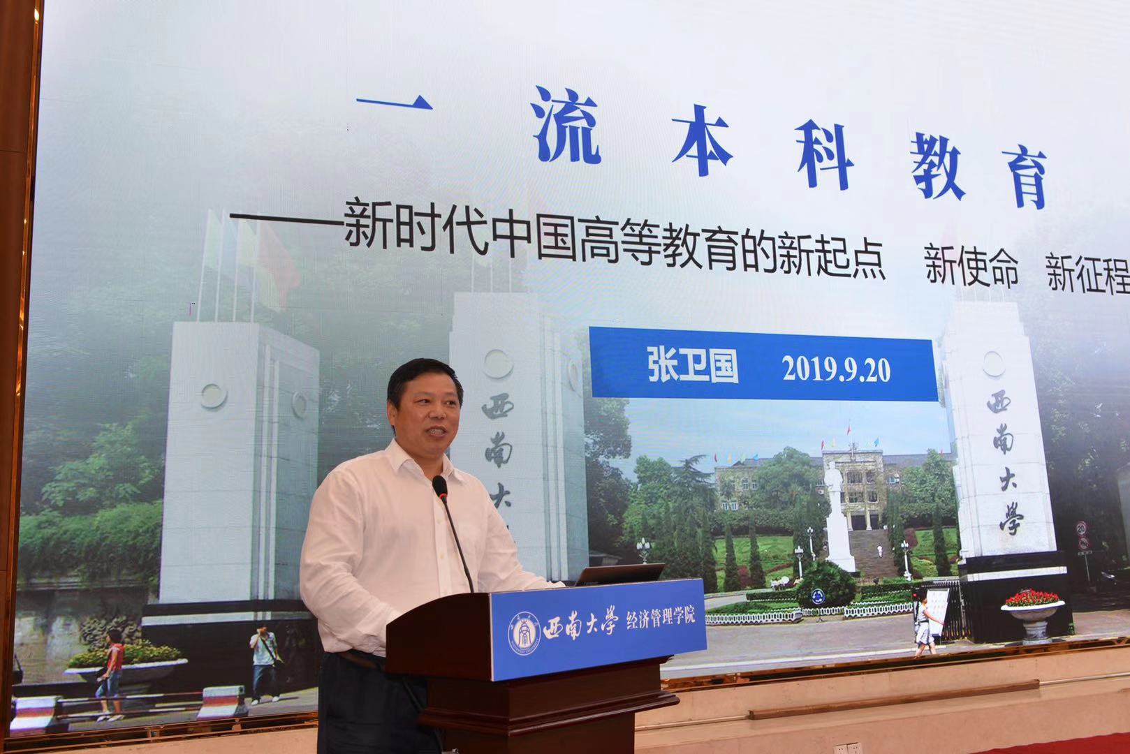 开幕式上,校长张卫国致辞,感谢委员会对学校的信任,欢迎全国工商管理类专家莅临学校指导工作。他指出,党的十九大和全国教育大会标志着本科教育发展进入新阶段,国家将本科教育的建设与发展提升到了新的高度,对全国高校提出更高要求,此次会议致力于推动我国工商管理类一流专业建设,意义重大。