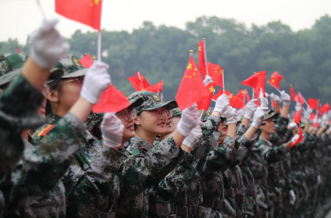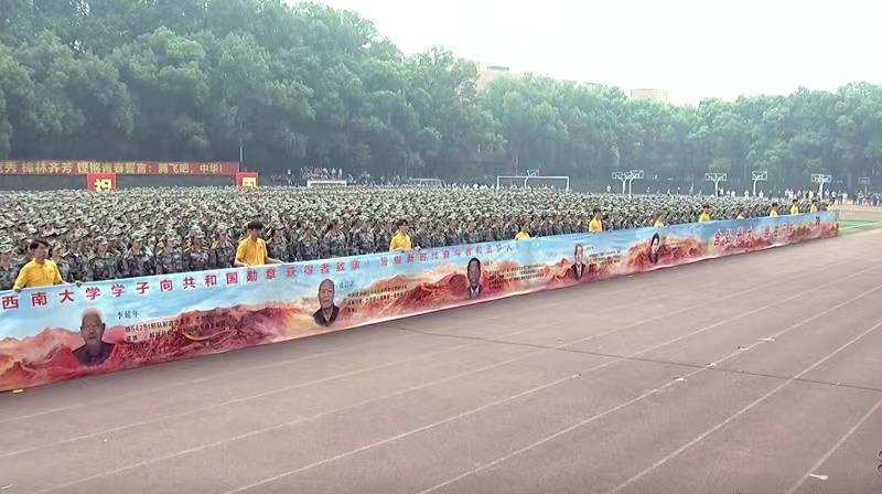 校长、军训师师长张卫国向参训同学致以问候,万名新生按照编排连队组成方阵,排列整齐,昂首挺胸,英姿飒爽,口号嘹亮,迈着雄健的步伐依次走过主席台,展现了新时代学子奋发向上的精神风貌。